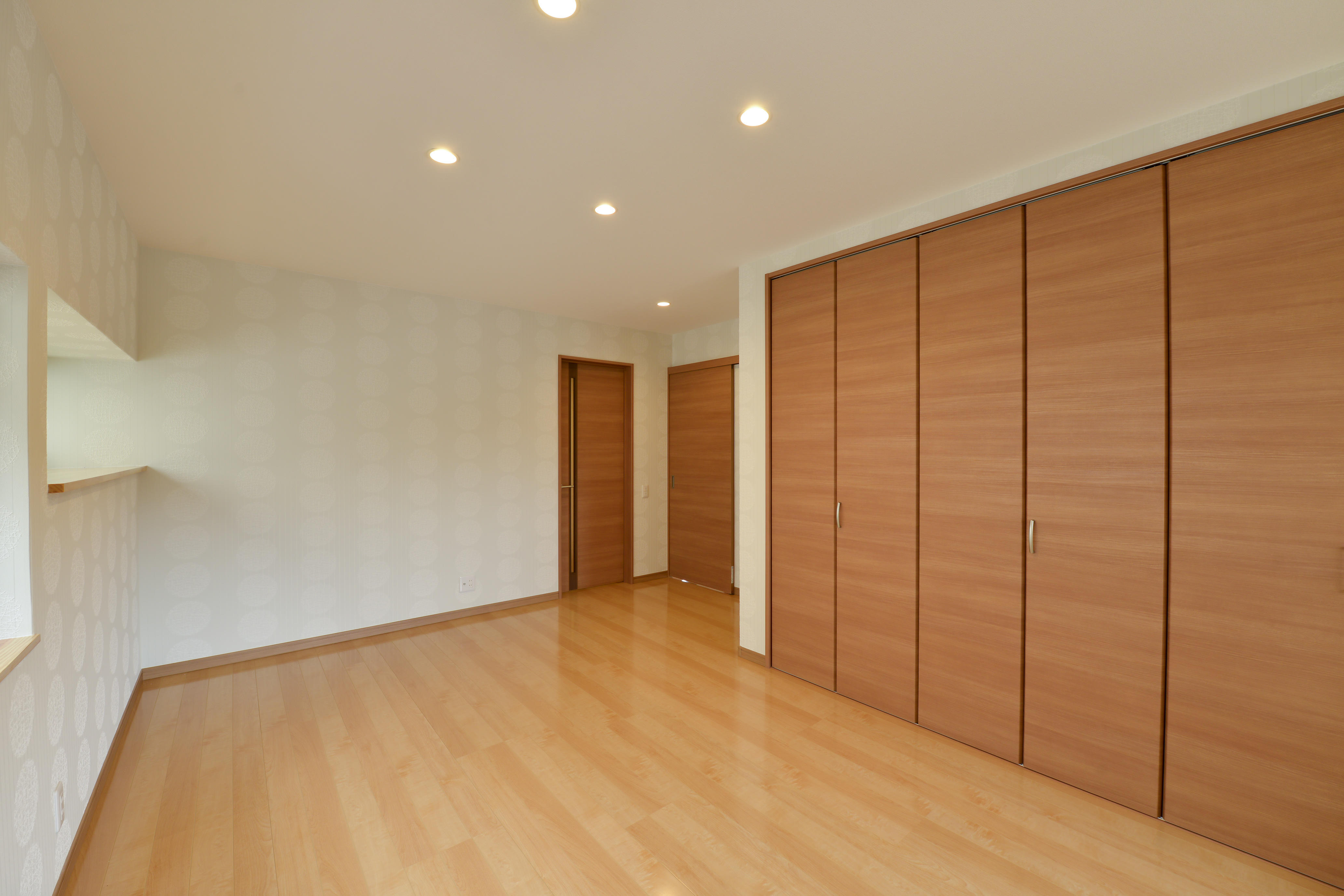 もともとあった居室をフローリングに変更。クロスも張り替え収納力抜群のクローゼットを設けました。リビングの横に面しており、別の扉を開けると納戸、お風呂、トイレへと一直線へ続くように工夫をしました。今はお子様も小さい為、ご家族皆様の寝室になっています。