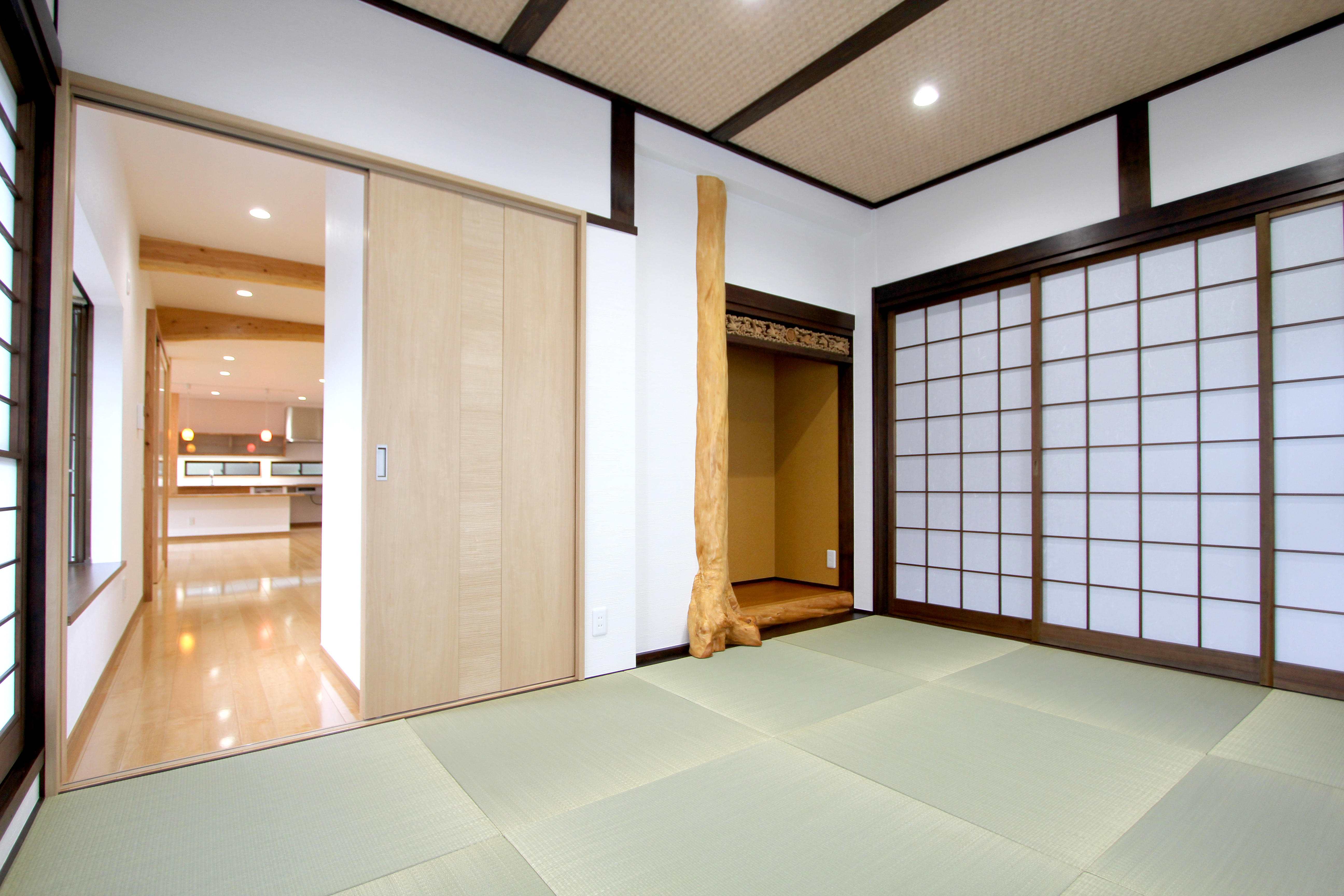 和室続きの広い間取りで、日当たりが良く広い庭が見える最高の場所を活用していなかったので 思い切って間取り変更を提案させて頂きました。 キッチン・リビングを最高の場所に設置し廊下を繋げて解放感溢れる広々としたリビングに。 夏は暑く、冬はとっても寒いとのことでサッシをペアガラスに替えたり北側はインプラスを仕様。 もともと断熱材も入っておらず、冬は寒いとおっしゃっていました。そのため天井、壁、床に断熱材を入れ夏も冬も快適に過ごして頂いてます。 フルリノベーションではありましたが、すべてを変えるのではなく、思い出を何か残したいと思い、立派な床柱を和室に移設し、その和室も風情がある内装に仕上げました。