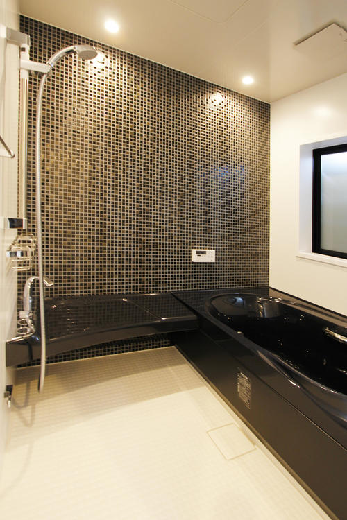 黒のアクセントカラーでシックな浴室に。最新の設備の浴室はお掃除もしやすく、暖かく快適です。