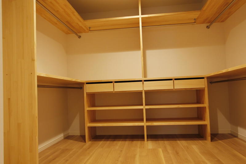 広々としたウォークインクローゼットは3面全てポールによるつり収納が可能。また高さに合わせ、2段にすることでデットスペースをなくし、収納力がアップします。