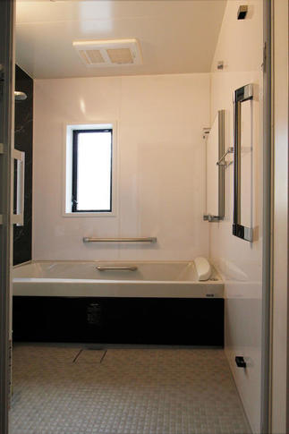 広いバスルーム・浴槽でゆっくりとリラックス。人工大理石浴槽で傷が付きにくく、鏡面張りで見た目も美しく清潔感があり、落ち着いた空間に。