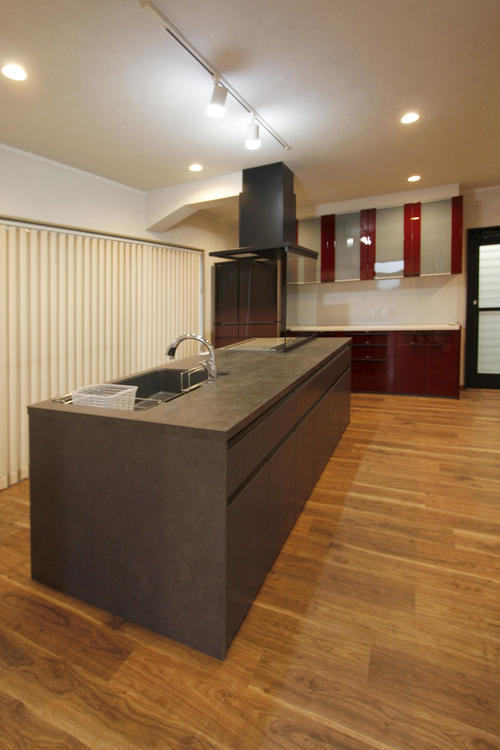 キッチンはアイランド型キッチンを採用。動線が良く、家事がしやすいです。また傷がつきにくく、熱にも強くセラミックトップで耐久性が抜群。