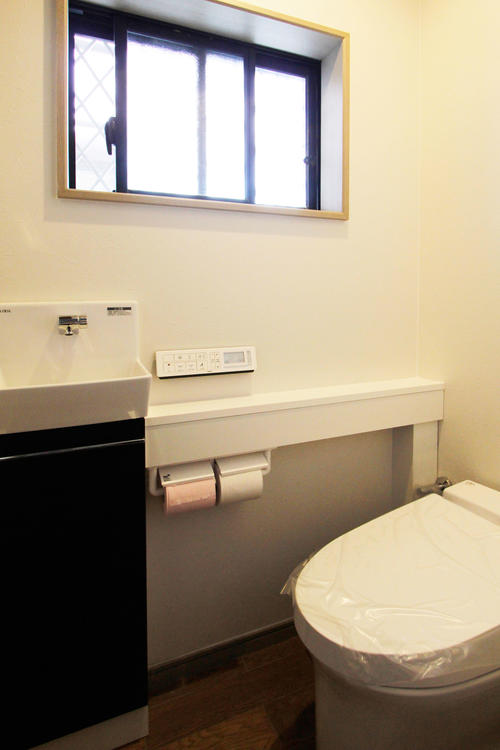 タンクレストイレや収納付きの小さめの手洗い器を採用することにより、限られたスペースを有効に使うことができ、見た目もすっきりとします。