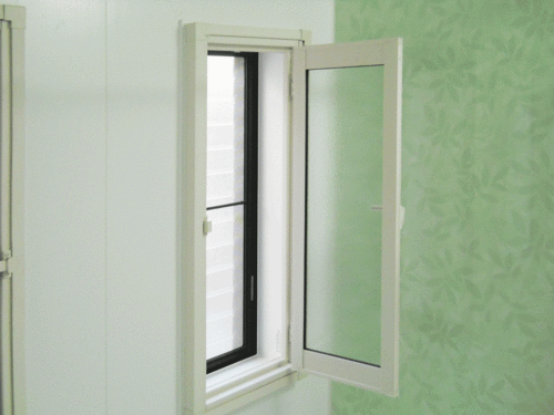 システムバスの窓にインプラスを設置し、外の冷気が入り込まないあったかい浴室になりました。