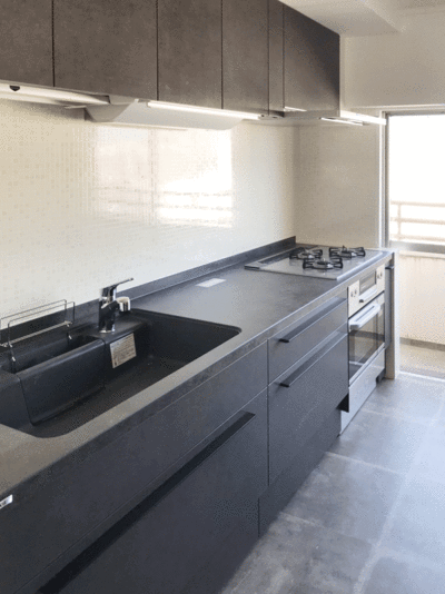 お施主様の希望に合わせた空間づくりをさせて頂きました。RC造のマンションで梁や配管の仕舞いに注力いたしました。ひとつひとつの商品や設置位置にこだわりのあるお施主様でしたが、最終的に満足頂いて良かったです。