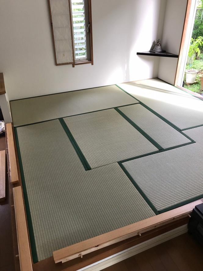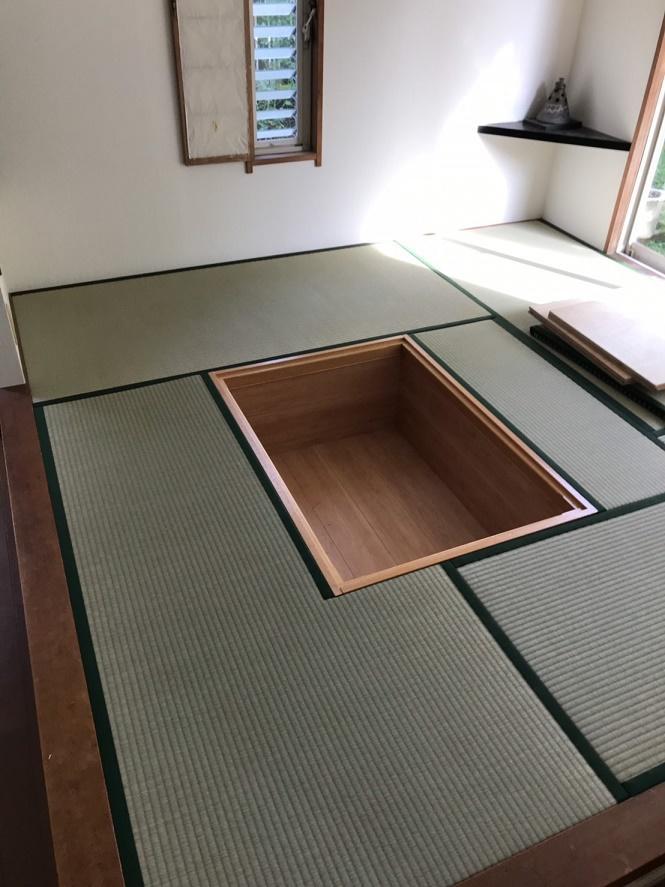 4.5畳の小上がりに掘りごたつを造作させていただきました。センターをずらしての施工になったため、畳の形が普通とは異なりますが、仕上がりはきれいでお施主様にも喜んでいただけて良かったです。