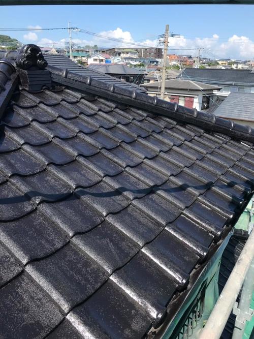 セメント瓦の塗装を行いました。高圧洗浄機でコケや汚れを落とし、瓦のずれや割れがないか確認しずれを修正、その後塗装を行いました。