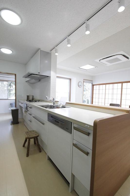 収納によりリビングと独立していた壁付けキッチンから、対面キッチンにリフォーム致しました。3mのキッチンはお子様と並んで料理をしても広々使うことができます。