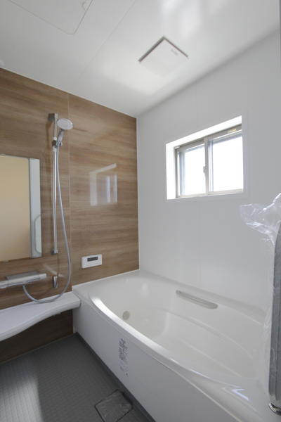 アクセントパネルは落ち着いた色合いを選び、リラックスできる心地よいお風呂に。床、カウンター、排水口など、掃除のストレスを軽くし洗いやすい、そして汚れにくい浴室です。