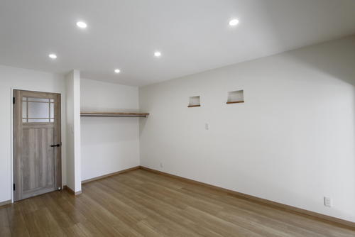 扉をつけない、オープンなクローゼット。学習机を置くことを考慮し高い位置にニッチを施工させていただきました。建具はLIXILのラシッサDパレットを採用。フェミニンでありながら落ち着いたシャビーシックなお部屋になりました。