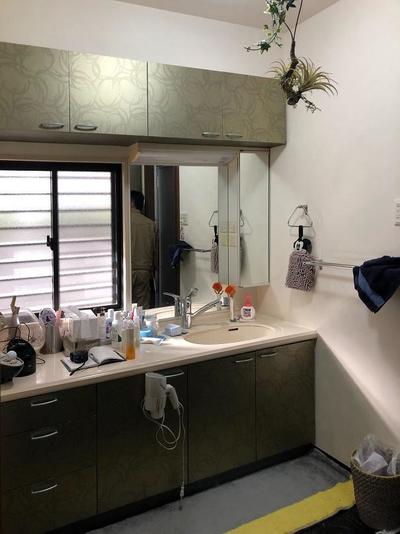 ご主人様・奥様ともに、個性的で変わった雰囲気の洗面室にしてほしいとご要望がありました。 洗面台のデザインはご主人様がショールームに足を運んでお選び頂きました。 内装はお客様の好みを考えながら打ち合わせを進め、ご主人様のサプライズとして奥様には内緒で間接照明を取り付けさせて頂きました。 重厚感のある洗面台がマッチする、とても高級感溢れる洗面室に仕上がりました。
