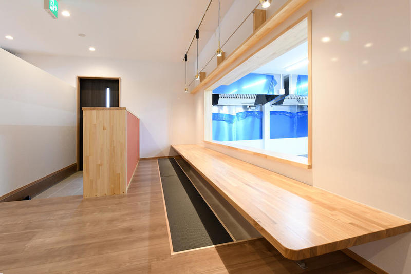 店舗部分はお客様がゆったりと寛げ、また着席人数によりテーブルの移動ができるよう可変性のある掘りごたつ席に。