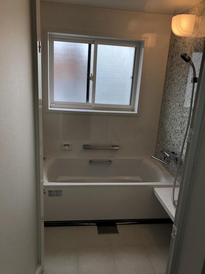 以前リフォームをさせて頂きましたお客様より、浴室改装のご依頼を頂きました。 築30年以上のお住まいでお風呂の老朽化や寒さ対策として在来のお風呂からユニットバスへとリフォームいたしました。更に窓にインプラス(内窓)を取り付け、断熱効果も向上しております。 洗面台の交換も同時に施工させて頂き、娘様からの提案でタカラスタンダードの温風機能付洗面台を採用させて頂きました。