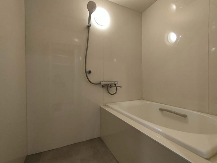 マンションの構造上ユニットバスが入らなかったため、在来工法で浴室を施工致しました。床には専用のフロアをはることで、ヒヤッとしない床に。また壁面はパネルを張っているので掃除のしやすい浴室になりました。