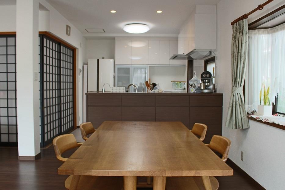 LDKの壁をできる限り少なくし、キッチンを対面型に変更しました。