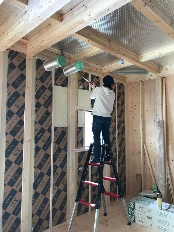 木材と断熱材の継ぎ目を、ひたすらに丁寧に塞いでくださっていました。