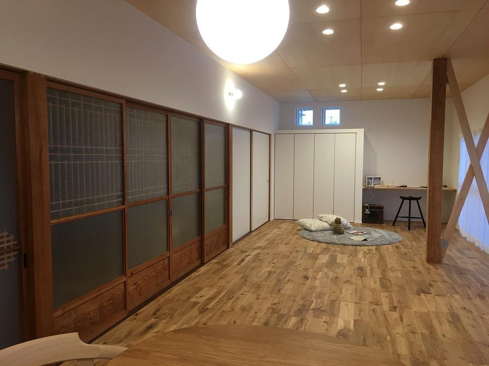 ご主人様が自身が育った実家へ、奥様お子様をつれて戻るにあたり母屋の仏間・玄関以外の空間を改修させていただきました。シンプルに住まわれる奥様のご意向を叶えたどこに居ても心地の良い空間となりました。断熱改修も行い、心も身体もあたたかく、お風呂は全員母屋を利用するので安心安全なお家です。