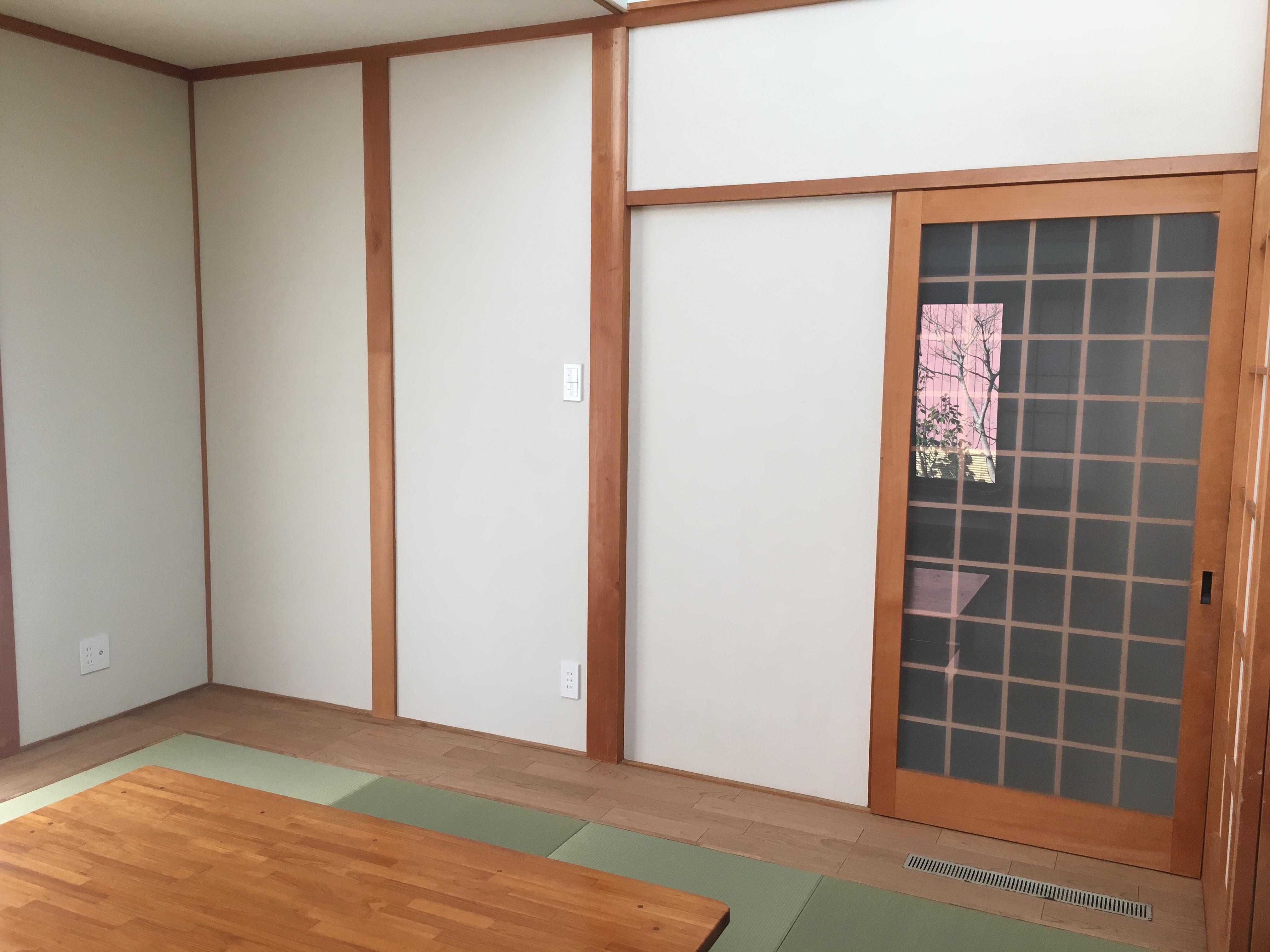 ご主人様の育ったご実家に、ご家族をつれて戻るための改装工事。既設の小上がり畳に薪ストーブを設置されたいというご要望から、薪ストーブ設置箇所・耐火に備えた内装(タイル)を中心に改装計画が始まりました。居間(畳の掘りごたつの小上がり)ダイニング・キッチンの改装・カップボードキャビネット交換・トイレ改装・ダイニングチェア納品