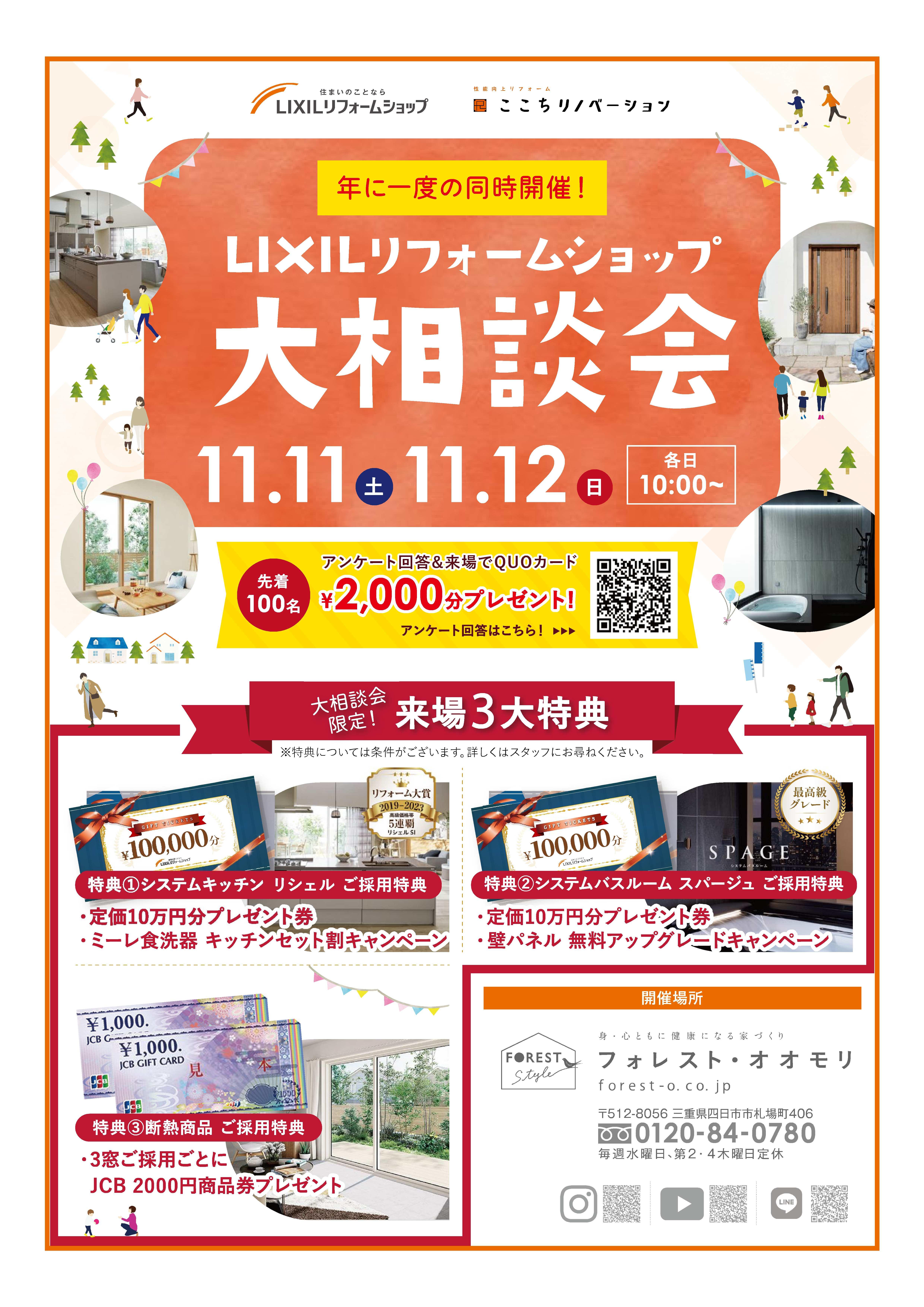 アンケートご回答&ご来場で(LIXILリフォームショップ参加店)先着100名に2000円分のクオカードをプレゼントいたします!