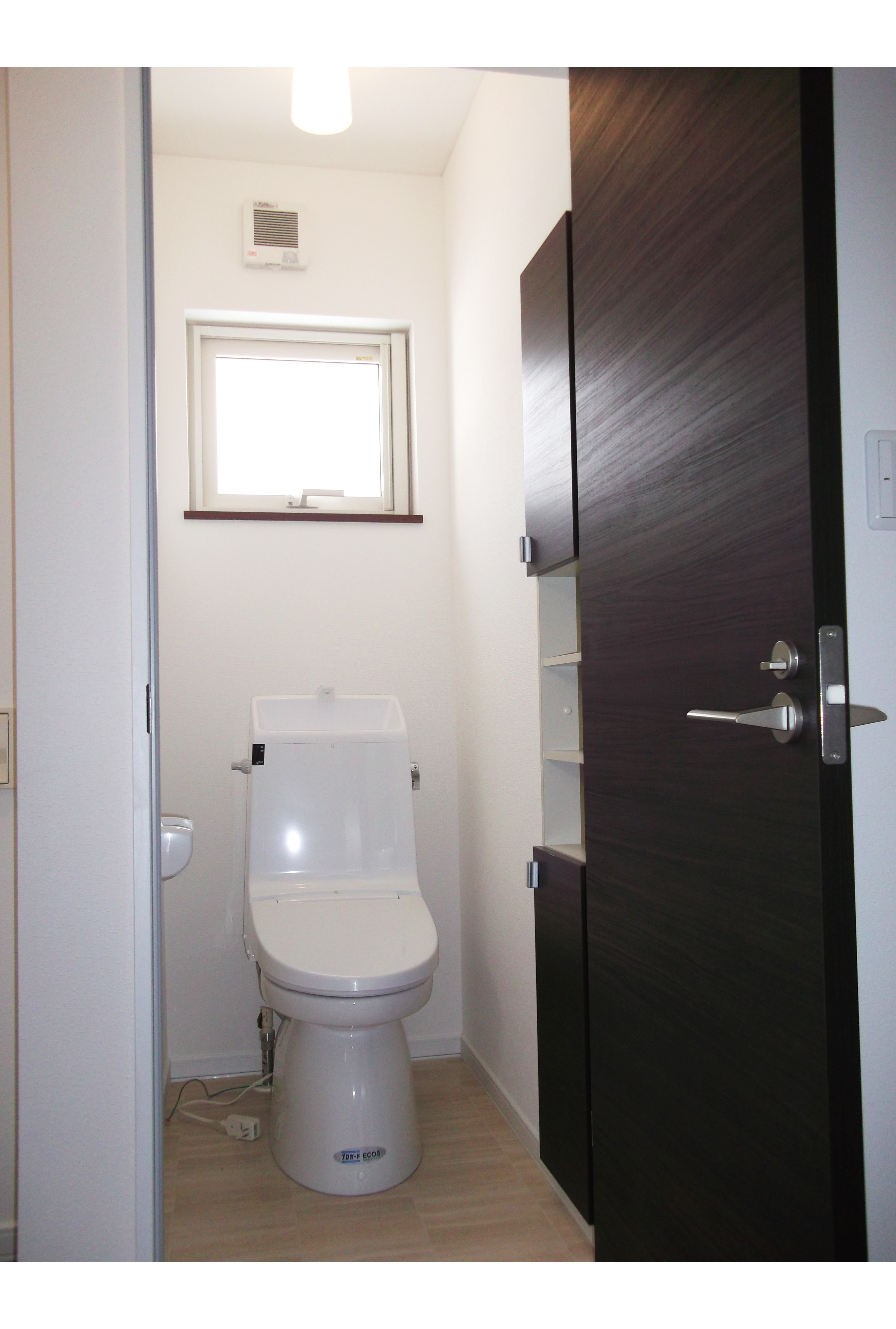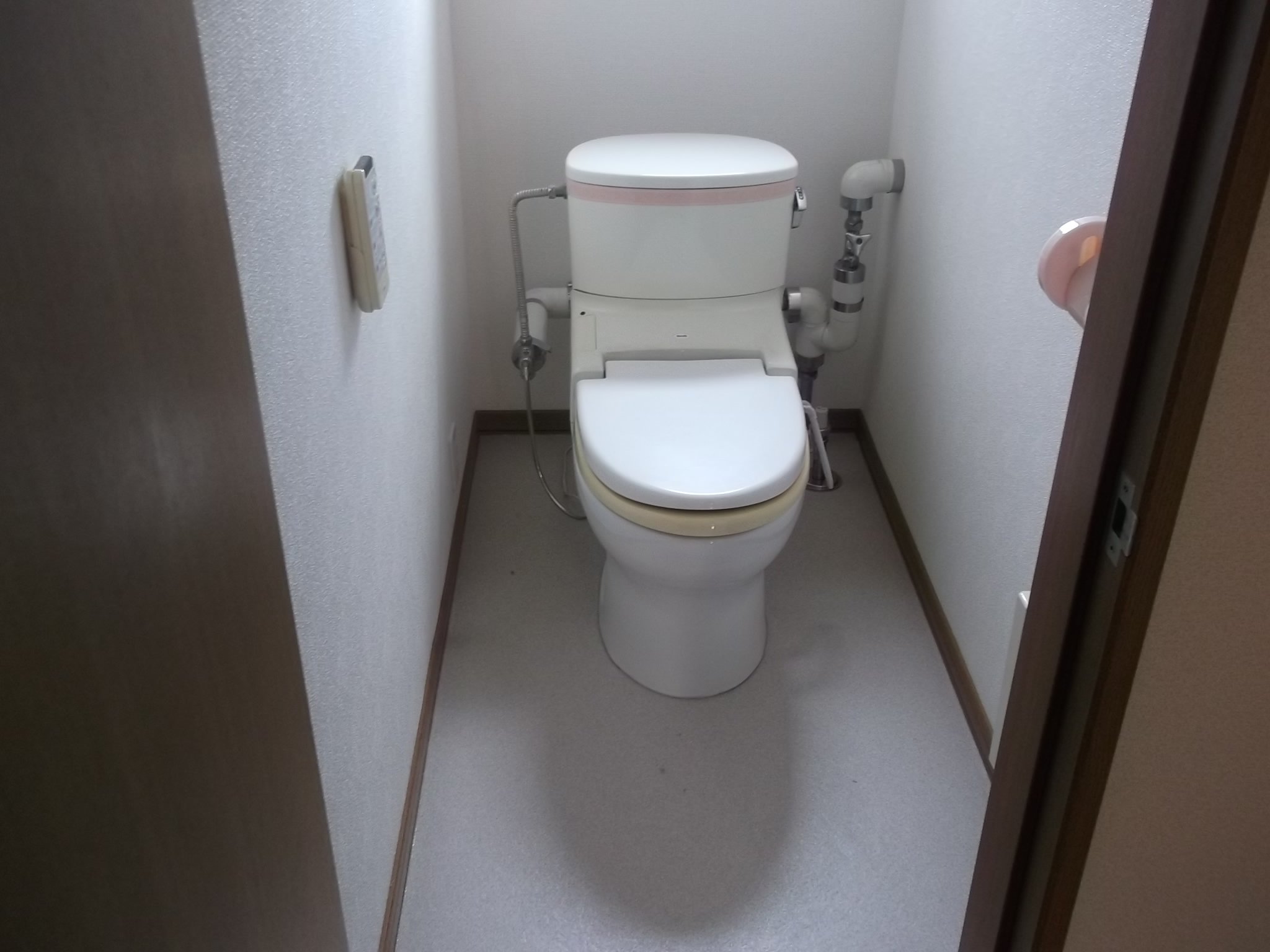 After: 床のタイルを張り替え、シンプルなデザイン&お掃除ラクラクな一体型『ベーシアシャワートイレ』に変更しました。