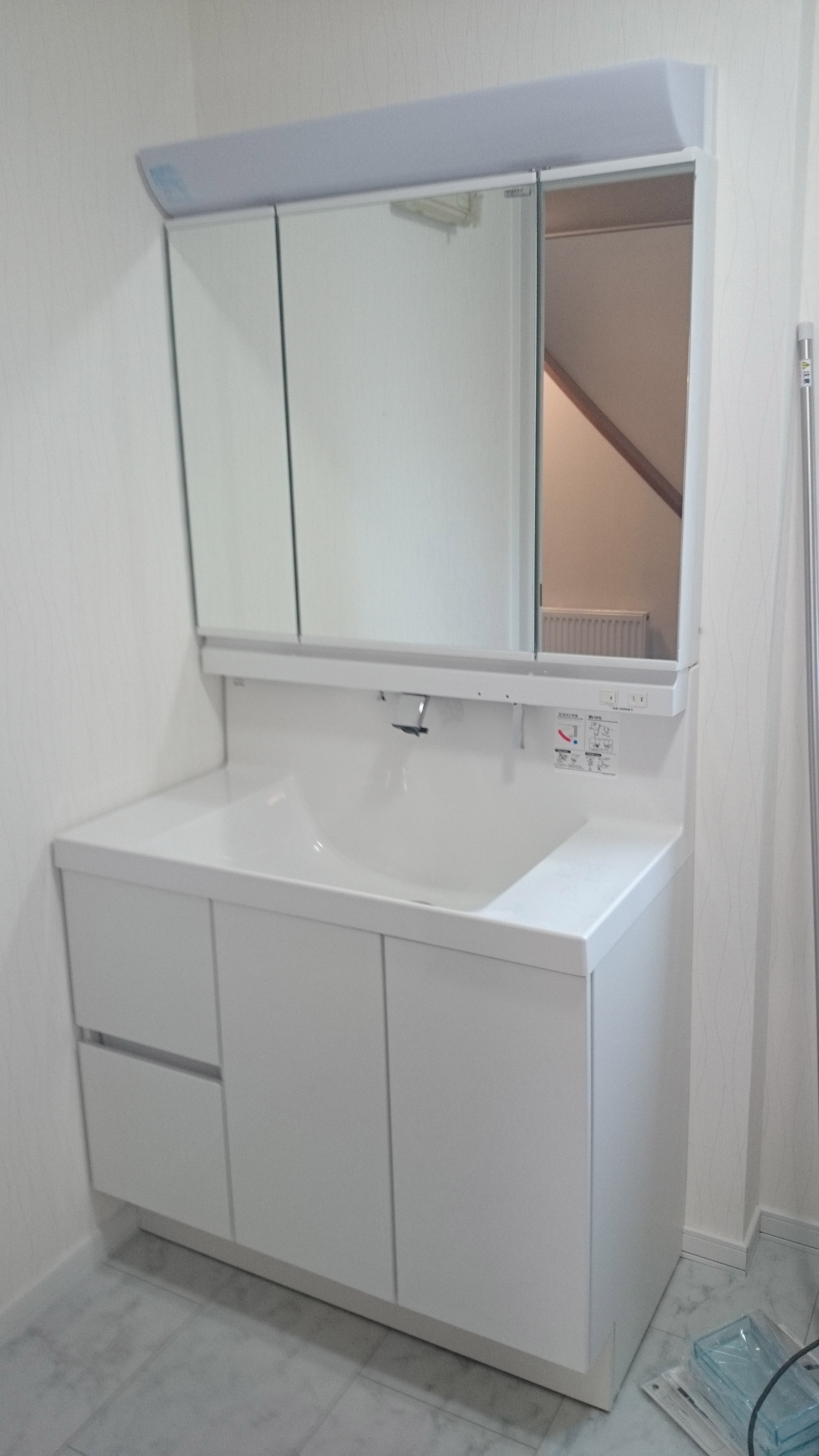 After: キレイもエコも、収納もスマートに。シンプルで美しいデザインの洗面化粧台『エルシィ』に変更。