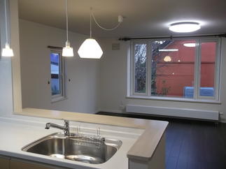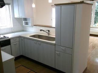 After: 収納部分をなくすことにより、明るく開放的なキッチンになりました。キッチンは、使いやすくて掃除も簡単な『アミィ』を使用しています。