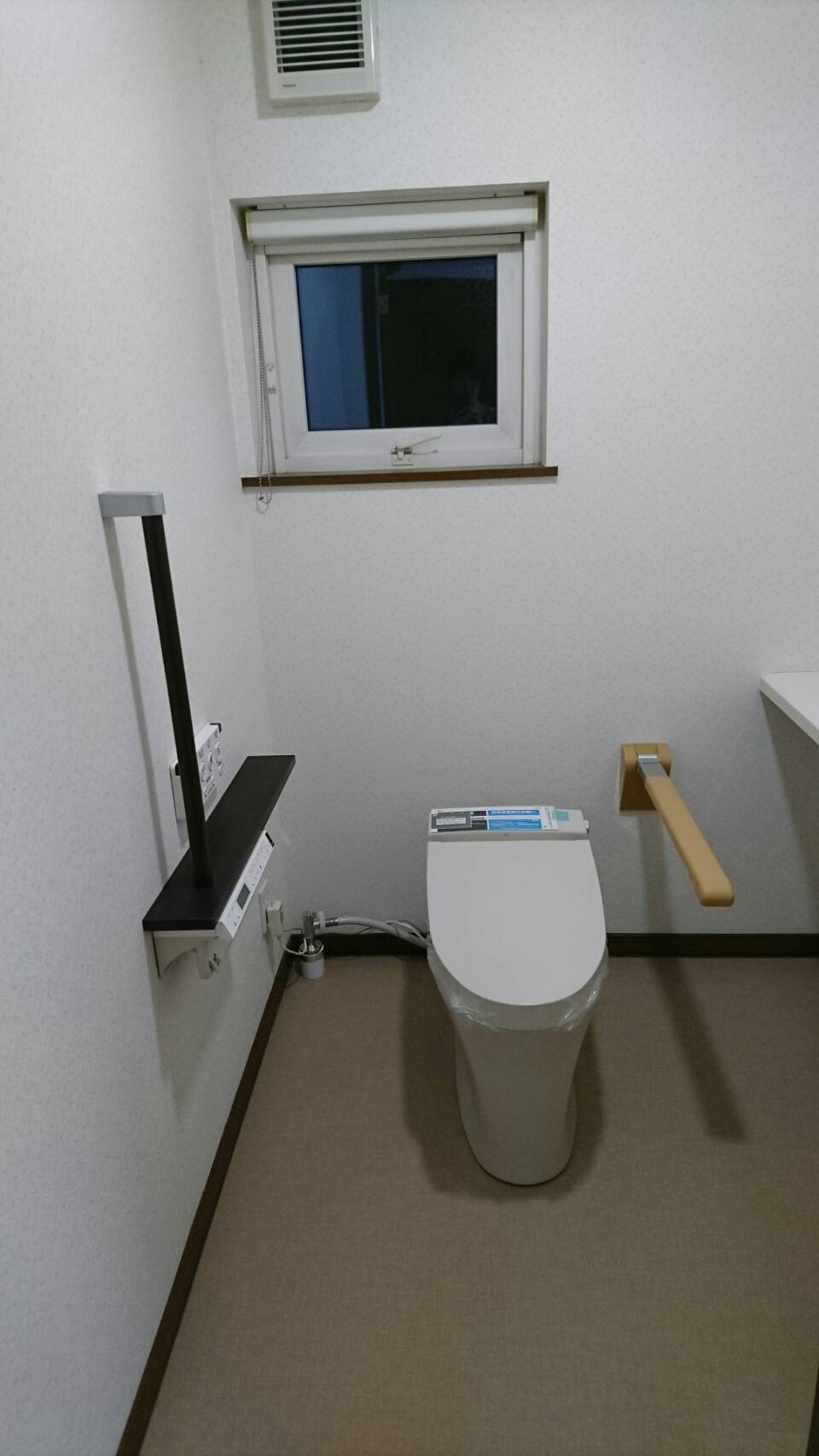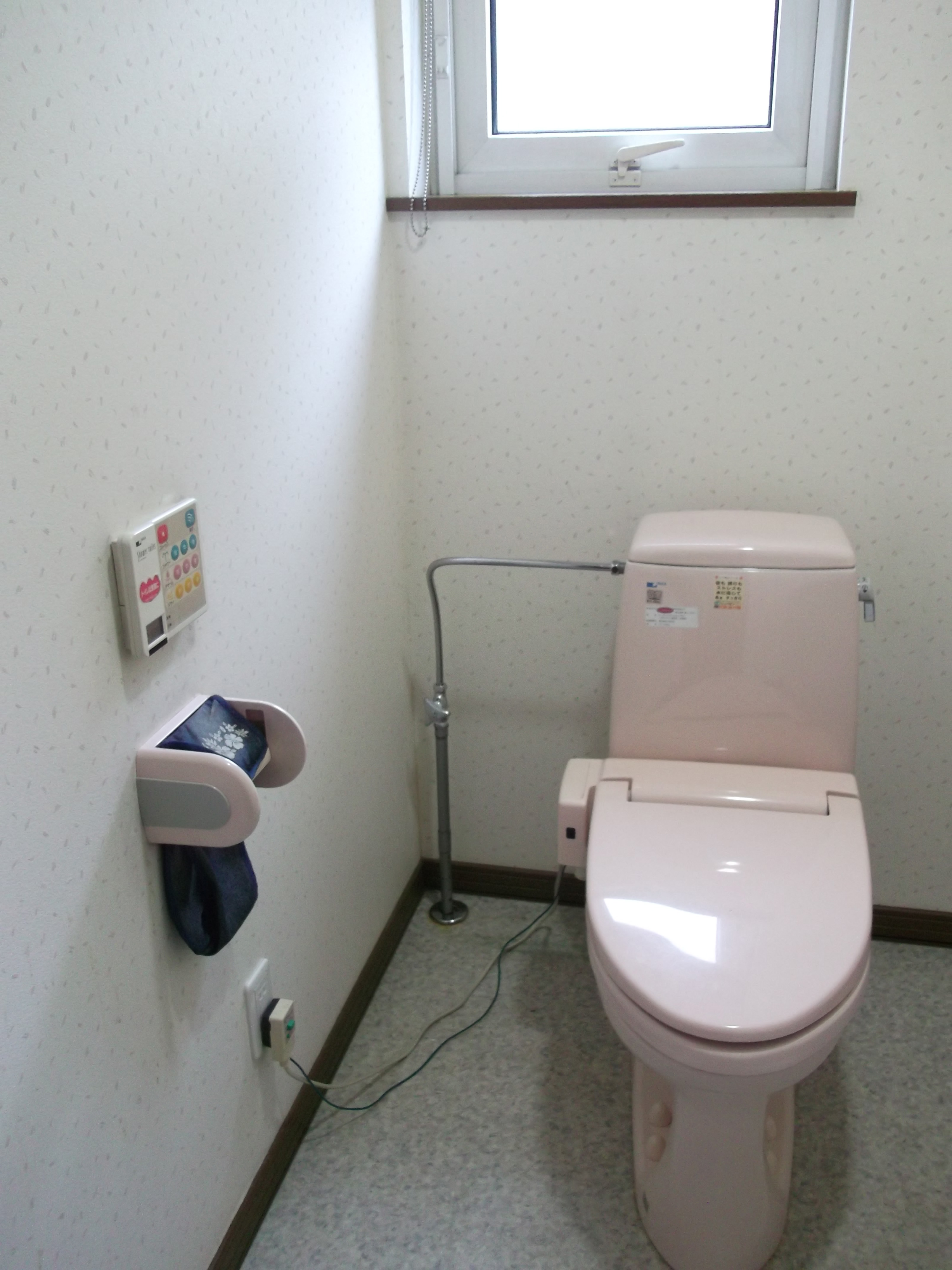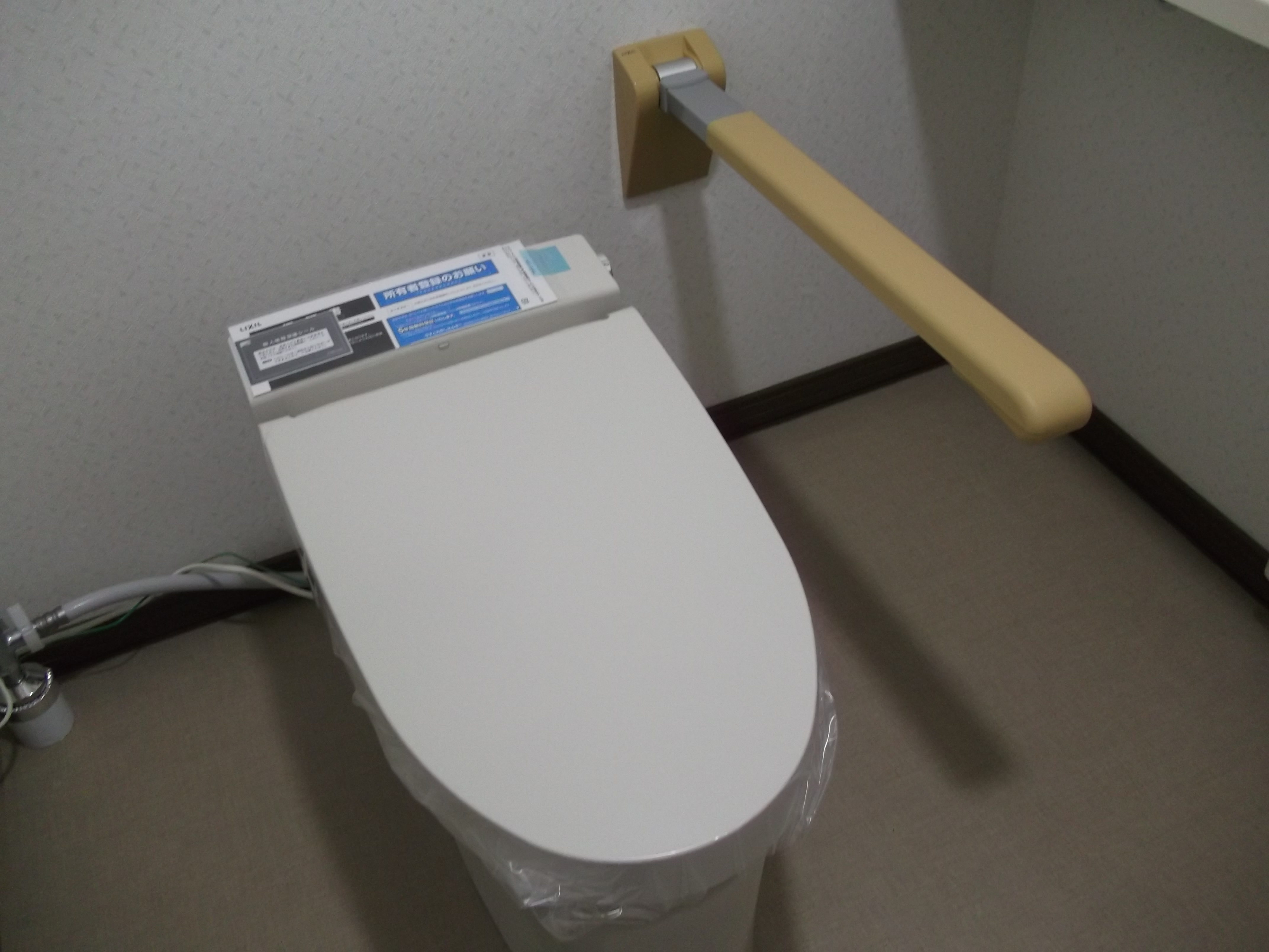 新しくなったトイレは、すっきりスマートな『LIXILサティスS』 新素材アクアセラミックで汚れがつきにくく、お手入れも簡単! 調子が悪かったシャワー部分も新しくなり、お母様に喜んでいただけました。