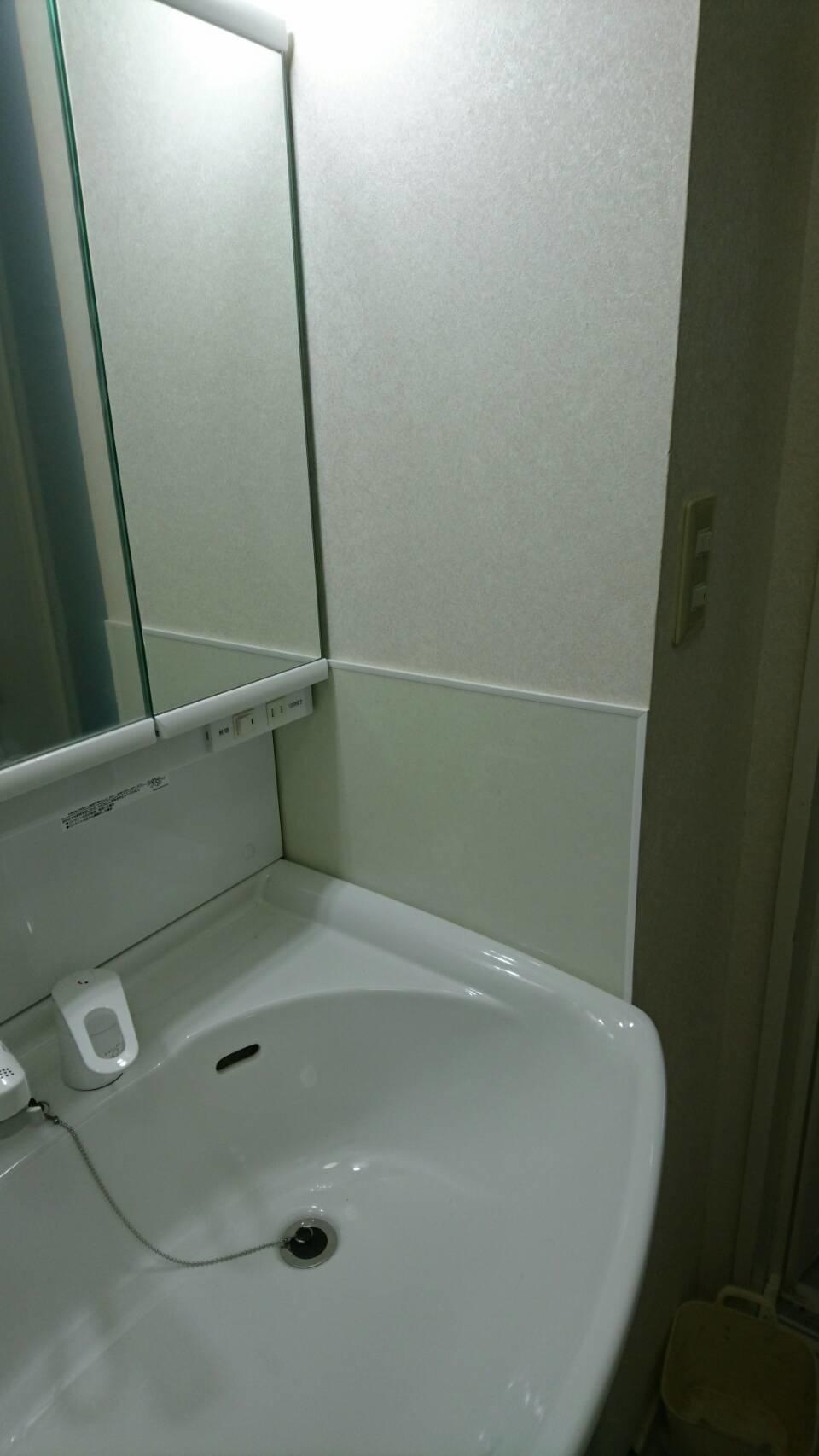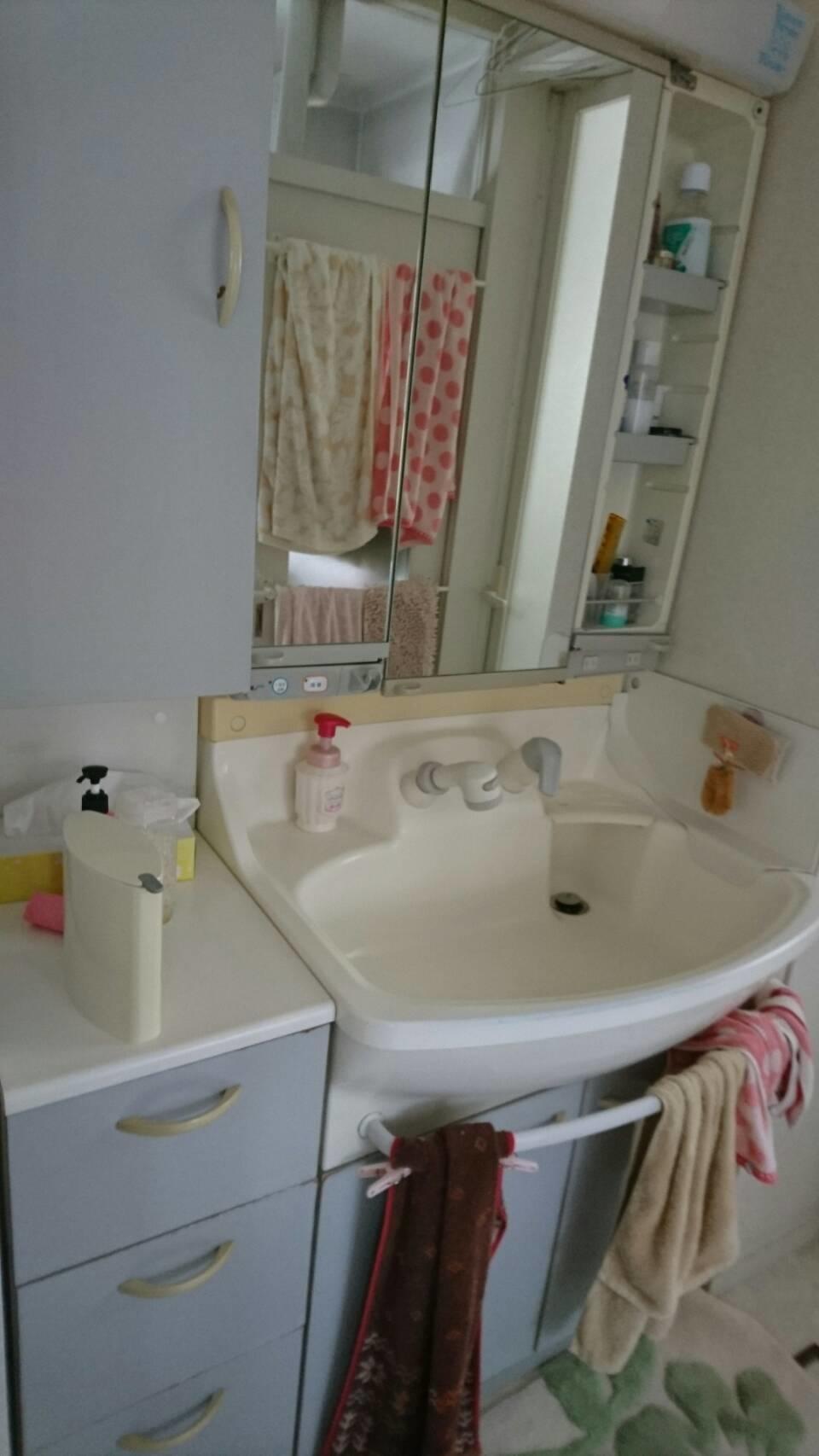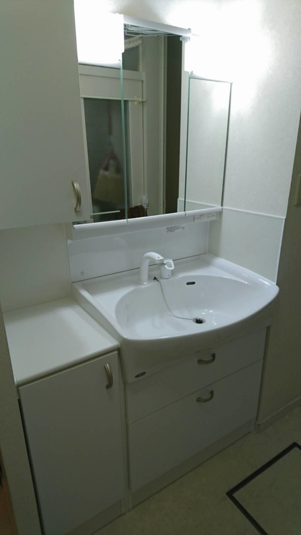 とても気に入って使用されていたINAXの洗面化粧台のミラー部分が破損。洗面ボウルも大容量で、ワンちゃんのシャンプーをするのに使いやすくて良かったのですが・・とのことでした。できれば同じものに交換を希望されていた奥様。