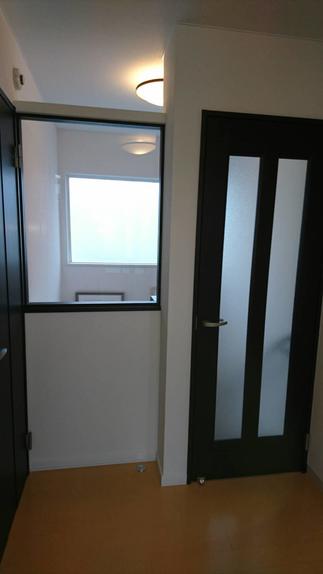 3Fの入り口に壁と室内ドアを新設し、猫ちゃんが下に降りていかないようにしました。ドアの色も他に合わせて違和感のない空間へ!