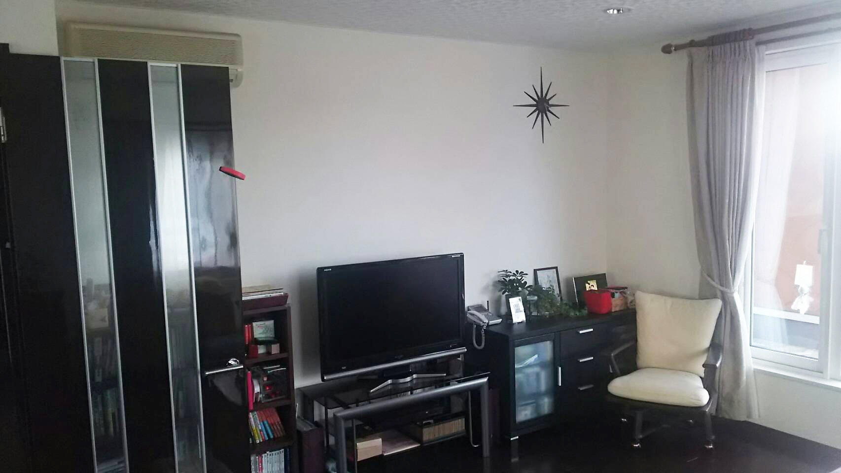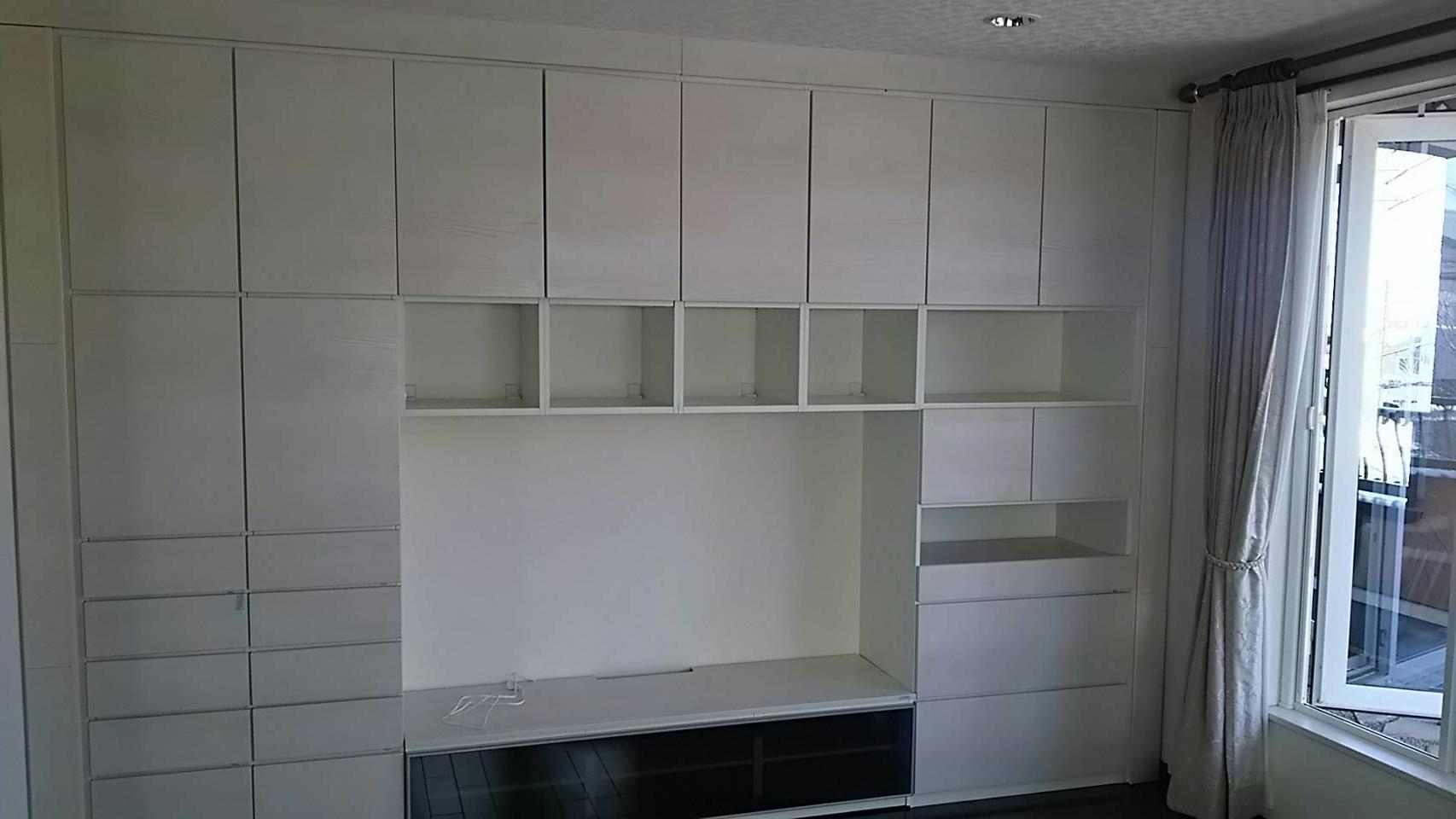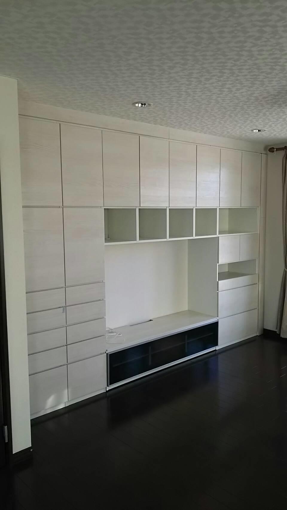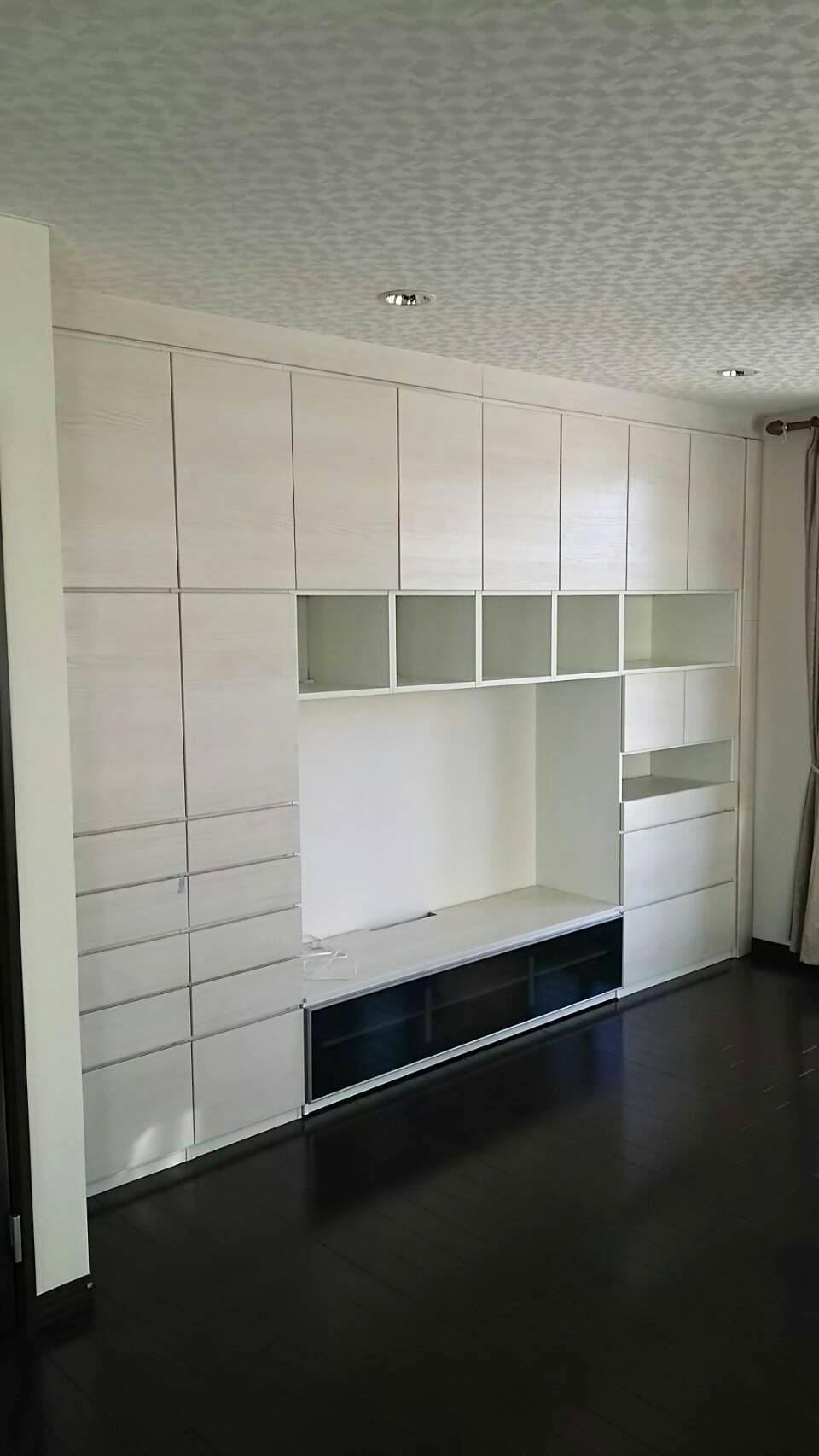 AFTER:ご主人がイメージし、プランニングした大容量のスタイリッシュなテレビボード兼収納家具は『大建工業MISEL』。インテリアとしても、小物を飾ったりしても素敵です。