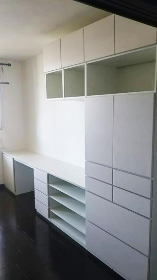 AFTER:「自分の部屋がほしい!」との娘さんの声を受けて、こちらもご主人がプランニングされたデスク付き平面収納を設置。勉強や作業ができるデスクも兼ねているので、大満足!
