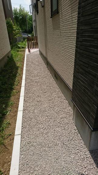 家周囲AFTER:防草シートを張った上から砂利を敷き、雑草が生えるのも防止できます!