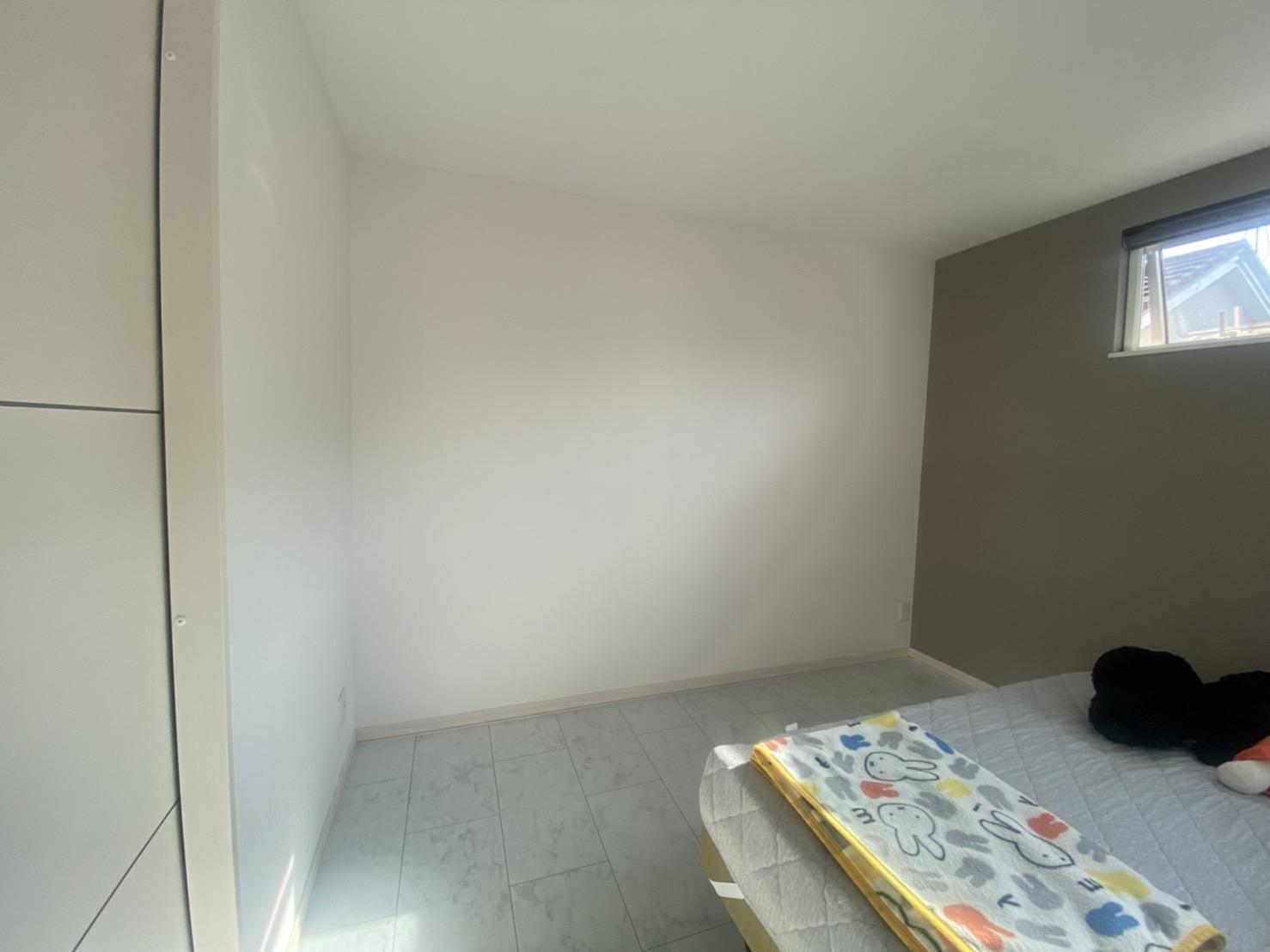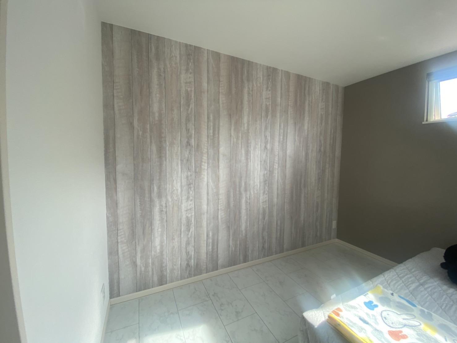 寝室のクロスを赤ちゃんが汚してしまったので、せっかくなら汚れが目立たない印象の変わるクロスに貼替をしたいとのご希望。奥様が気に入られたナチュラルな木目調のクロスに貼替をいたしました。