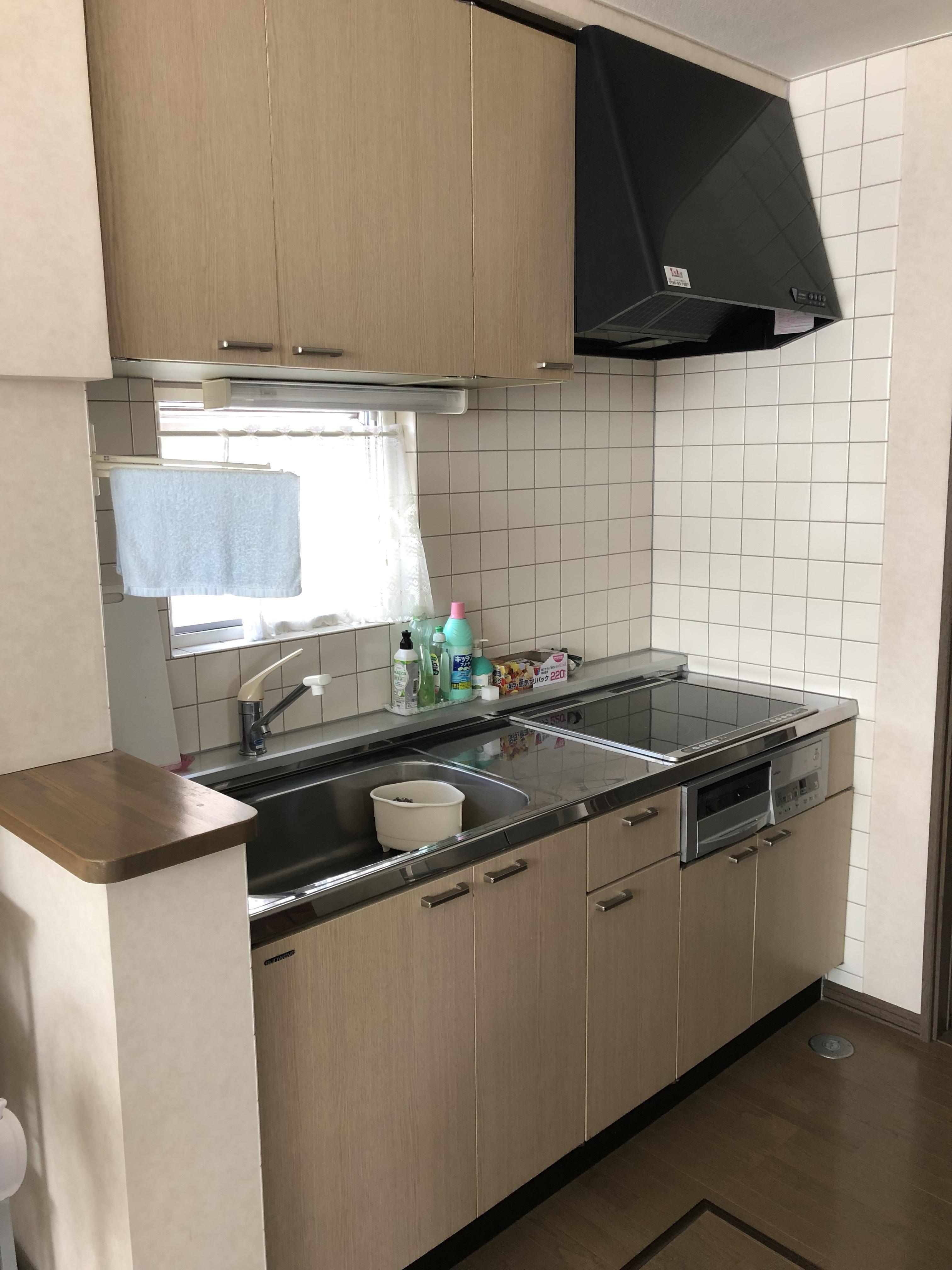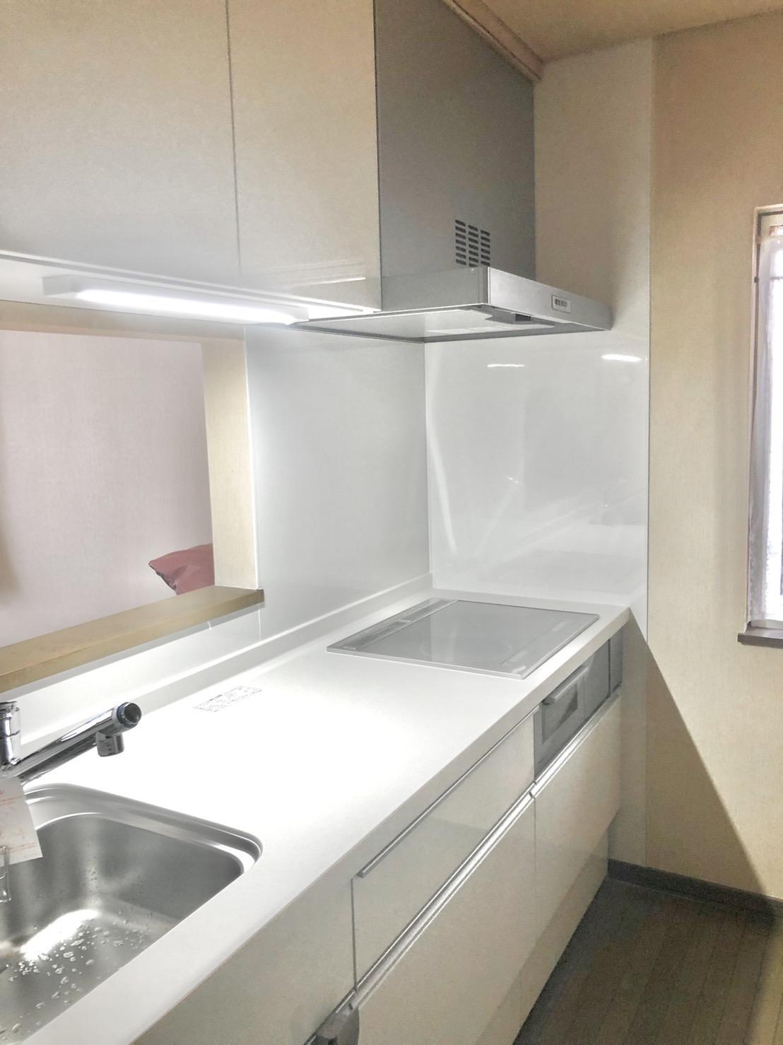 経年劣化によるキッチンの水栓やIHに不具合が起きていたので、間取り変更を行い対面キッチンにいたしました。キッチンは、LIXIL AS(間口2550㎜)を採用し、奥様が気に入った扉柄のシンプルなホワイト、キッチンスペースが明るい印象へ!