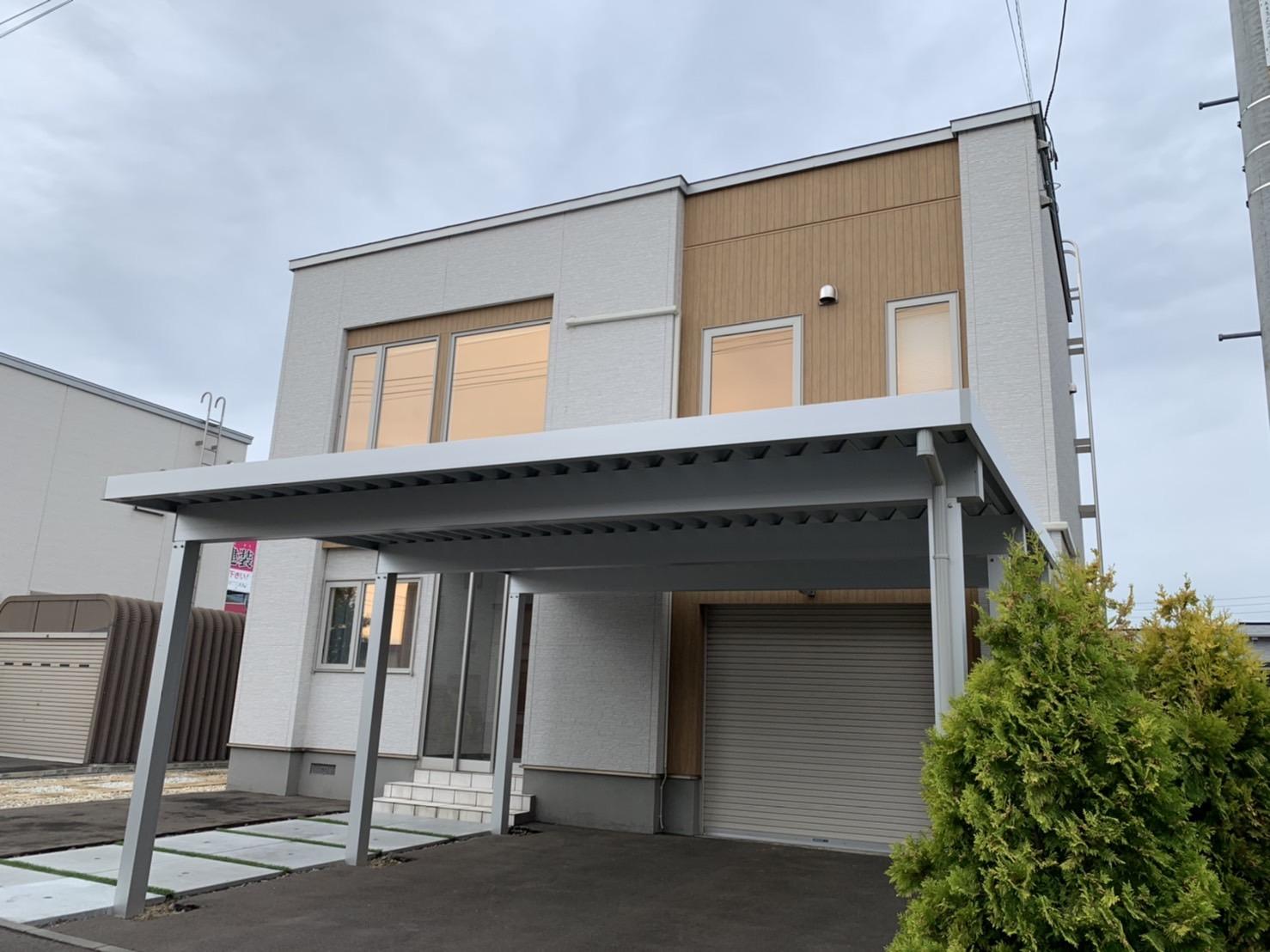 年々除雪が大変になるので、家の前にカーポートを設置したい。玄関廻りの外構工事も検討しています。三協アルミ カーポートG1-R 2台 6本柱(SLC色)積雪1.5mを設置しました。