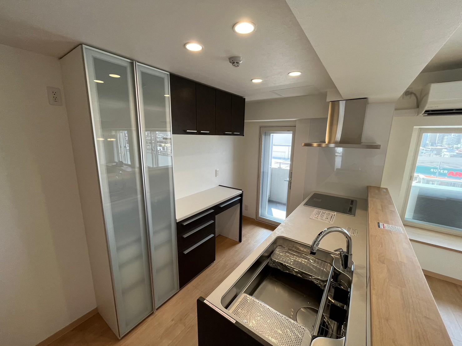 マンションを購入したので、夫婦二人で住める部屋へリノベーションしたいとご依頼がありました。リビングダイニングスペースをホワイトとナチュラルベージュの木目調が清潔感があり、広く明るい空間にリフォームしました。広々したリビングには大きな窓があるので、インプラスで遮音性や断熱性を高めたリビングスペースになっております。