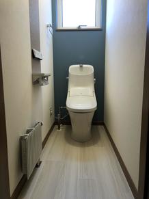 トイレリフォーム!ブルーとブラウンのアクセントクロスがオシャレなトイレ空間へ!