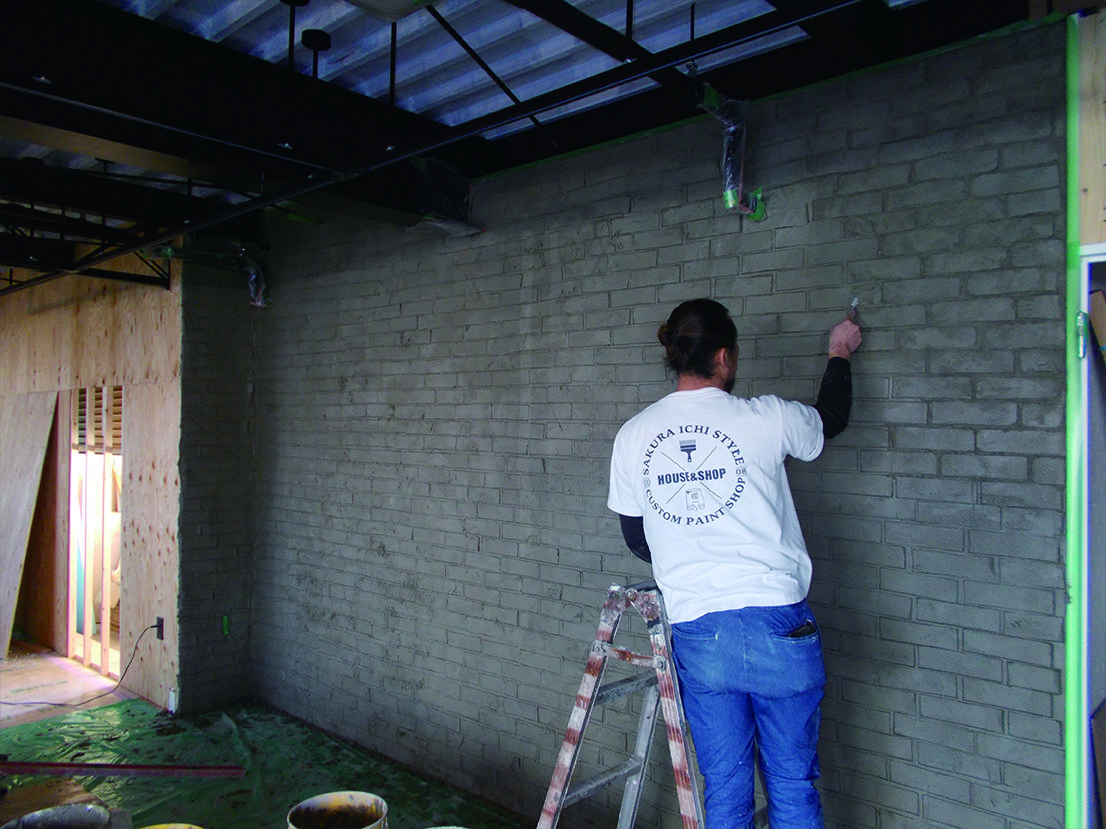 店舗入口から真っ先に目に入る壁面を白くペイントすることで室内を明るい印象にすることができました。