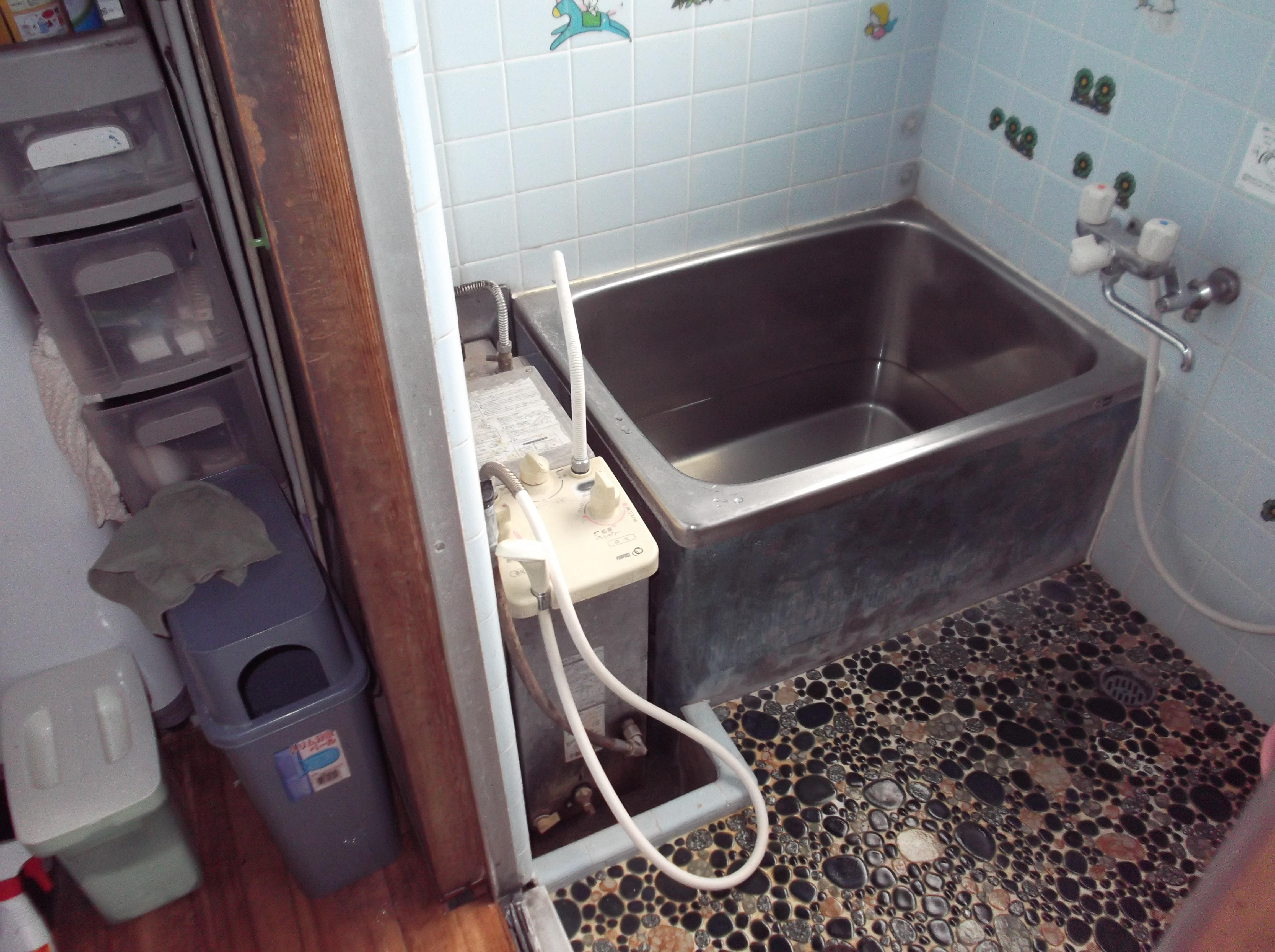 改修前は浴室内にバランス釜といわれる給湯器があり、浴槽は大きなものを入れることができませんでした。既存のバランス釜を外付型給湯器に交換することでより大きな浴槽を設置できました。タイルの浴室からユニットバスにリフォームして、清掃性や断熱性もアップしたとお客様にも喜んでいただくことができました。