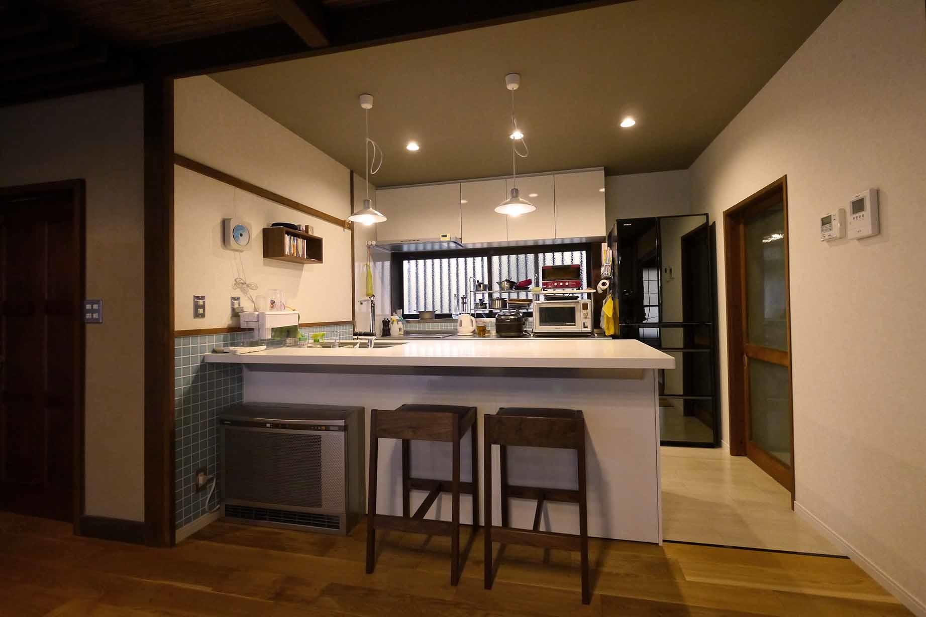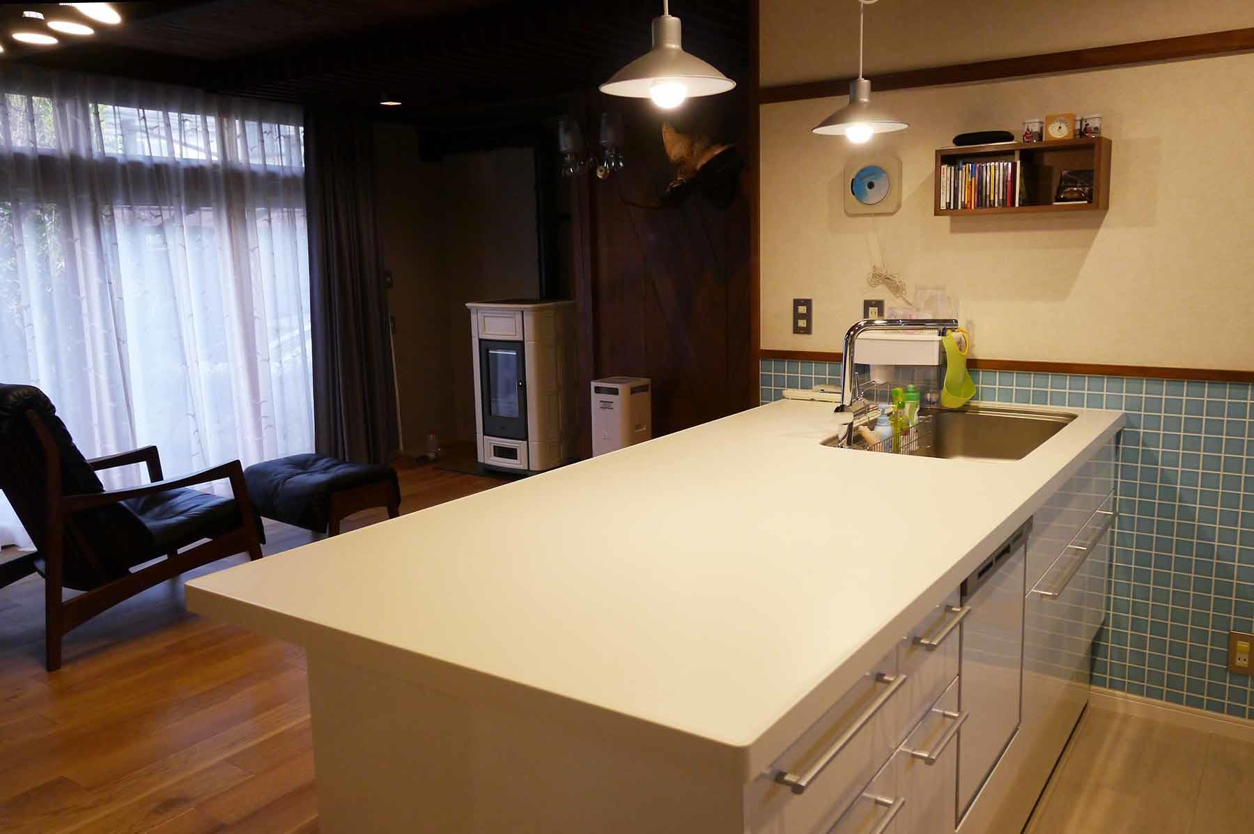 「子育てのしやすさを」とキッチンとリビングの間にあった間仕切りを撤去し、2列型のカウンターキッチンを設置しました。小さなお子様の様子をみながらお料理が作れるようになり、簡単なお食事もできる開放的なキッチンが実現しました。