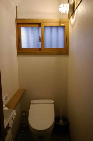 リフォーム前のトイレは寒さと狭さが気になりました。そこで、熱が逃げやすい窓には内窓を設けました。壁面に張っていたタイルをはがし、あえて真壁にしてスペースの確保を図りました。トイレをタンクレスにして、サイドに手洗器を設け、見た目もスッキリさせました。