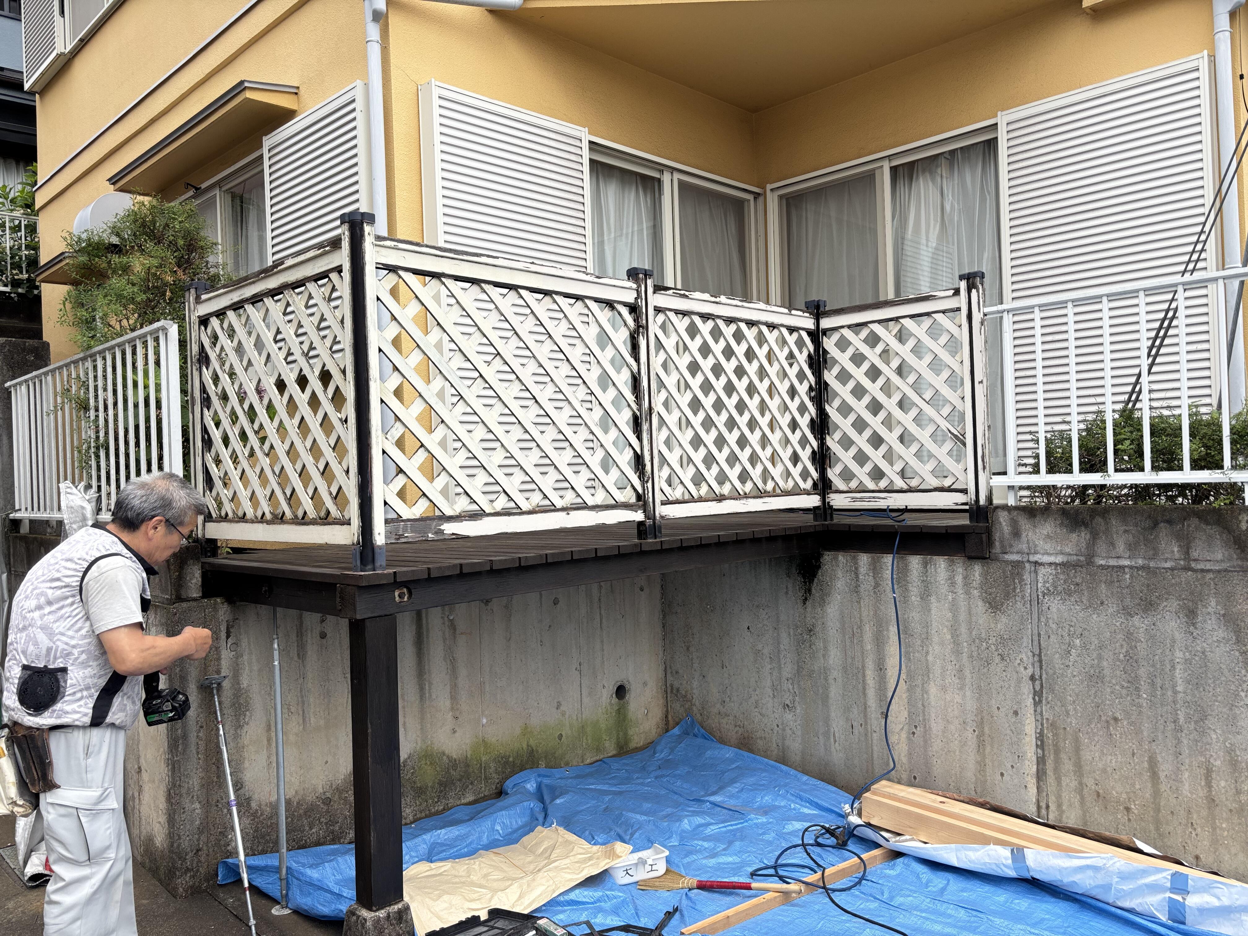 ウッドデッキの手摺をリニューアルしました