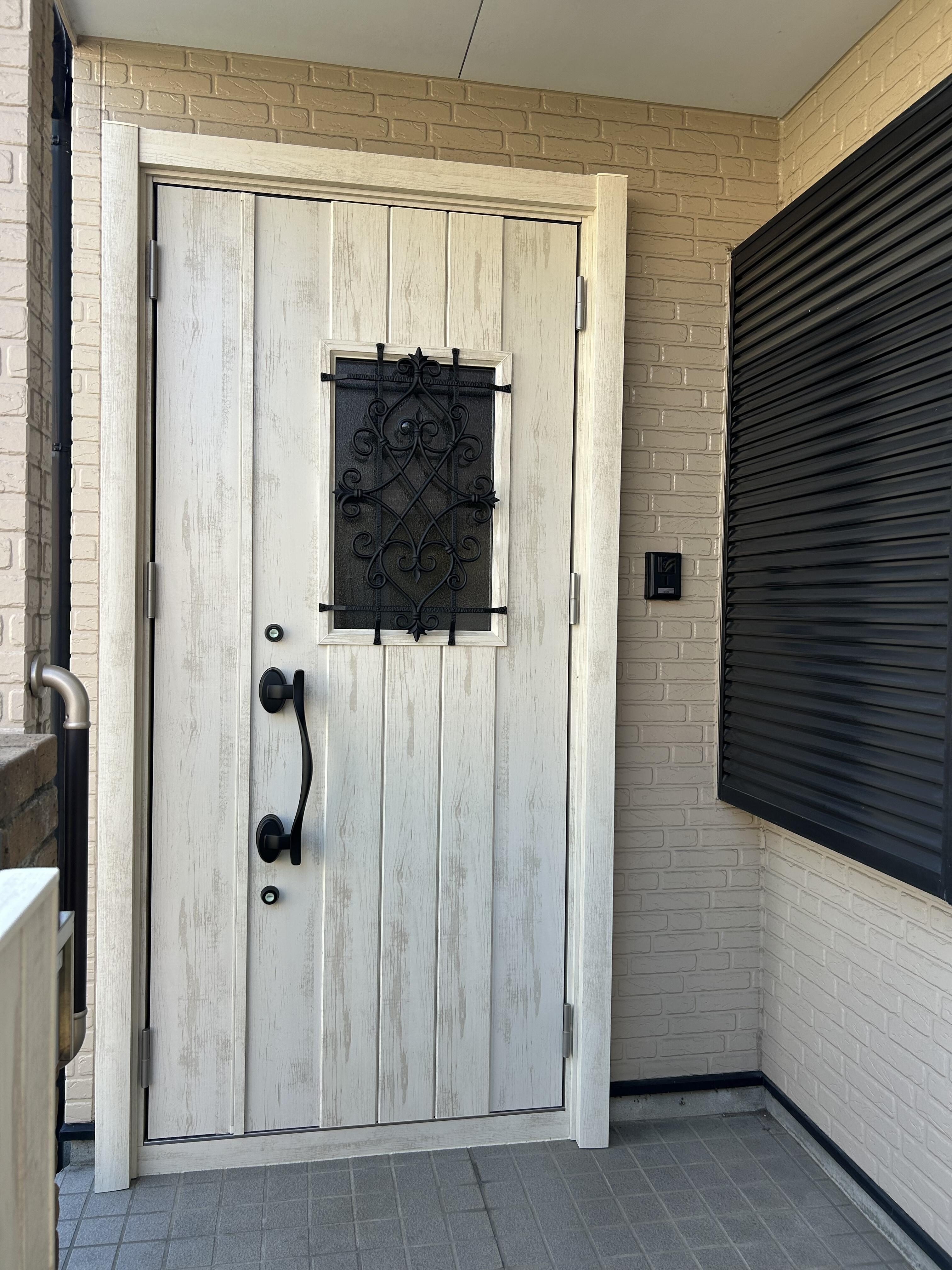 一昨年、家の中をリフォームされ内部建具をアイボリーに変更されました。 今回は外側も同じ色にされ、家全体のテーマが合わさったリフォームとなりました。