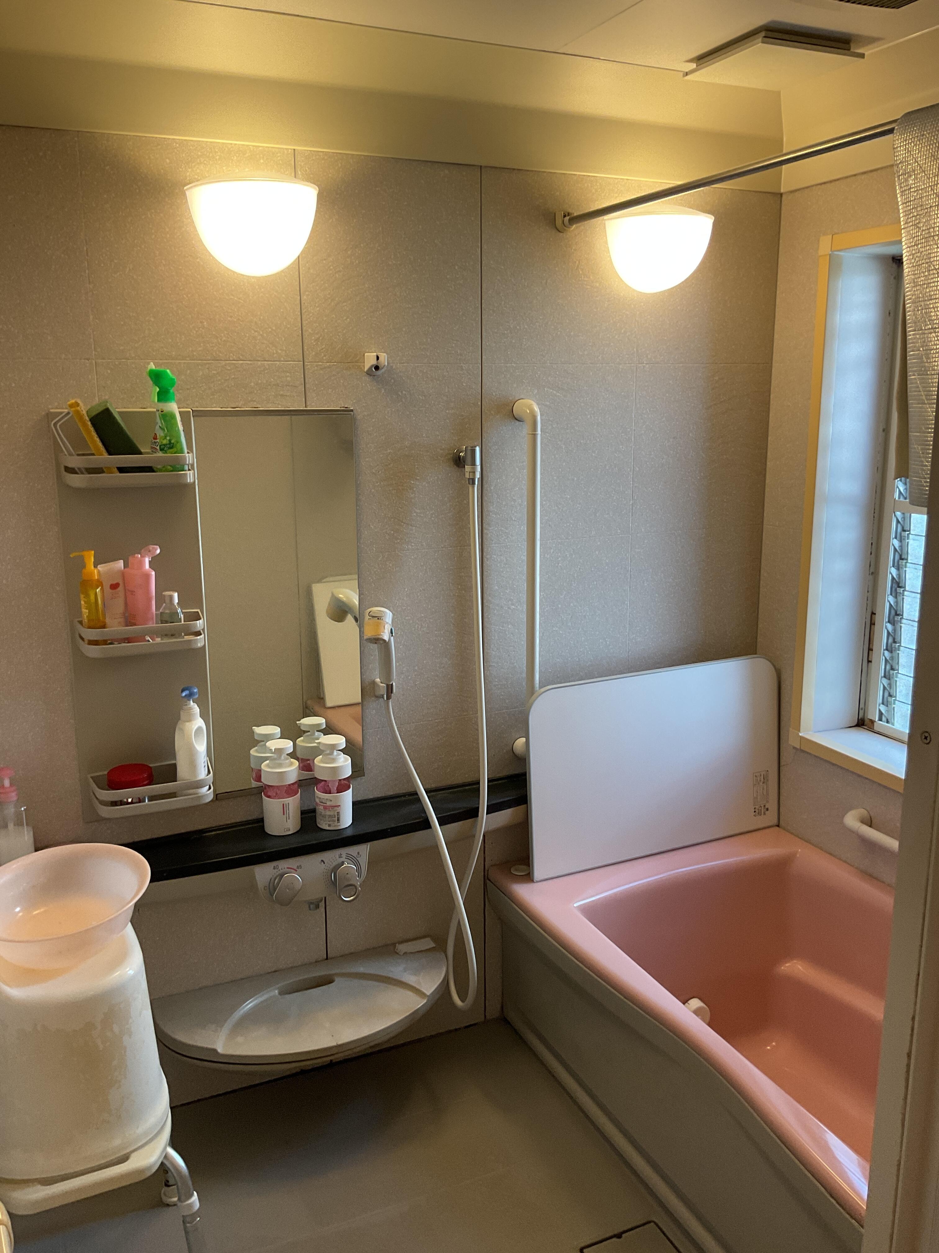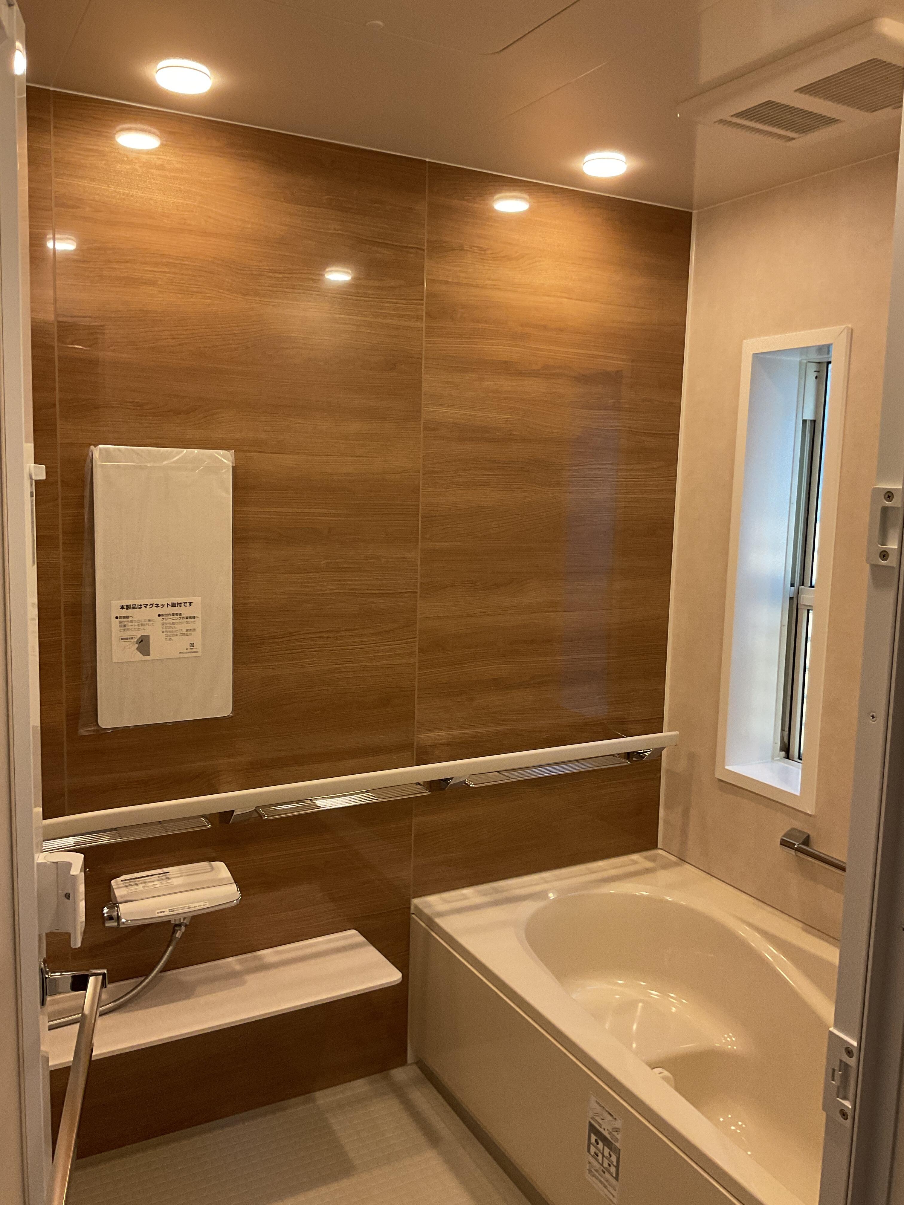 3社合い見積もりの中、弊社にご依頼いただいた工事でした。 工事期間中は工事車両の駐車スペースや作業スペースをご提供していただき 工事もスムーズに進み大変助かりました。 システムハバスルームのリデアにはスマートエスコートバーやメタルシェルフ等をご採用させていただきました。 その他、手元シャワーフック・らくらくレイアウトも有り快適入浴になっております。