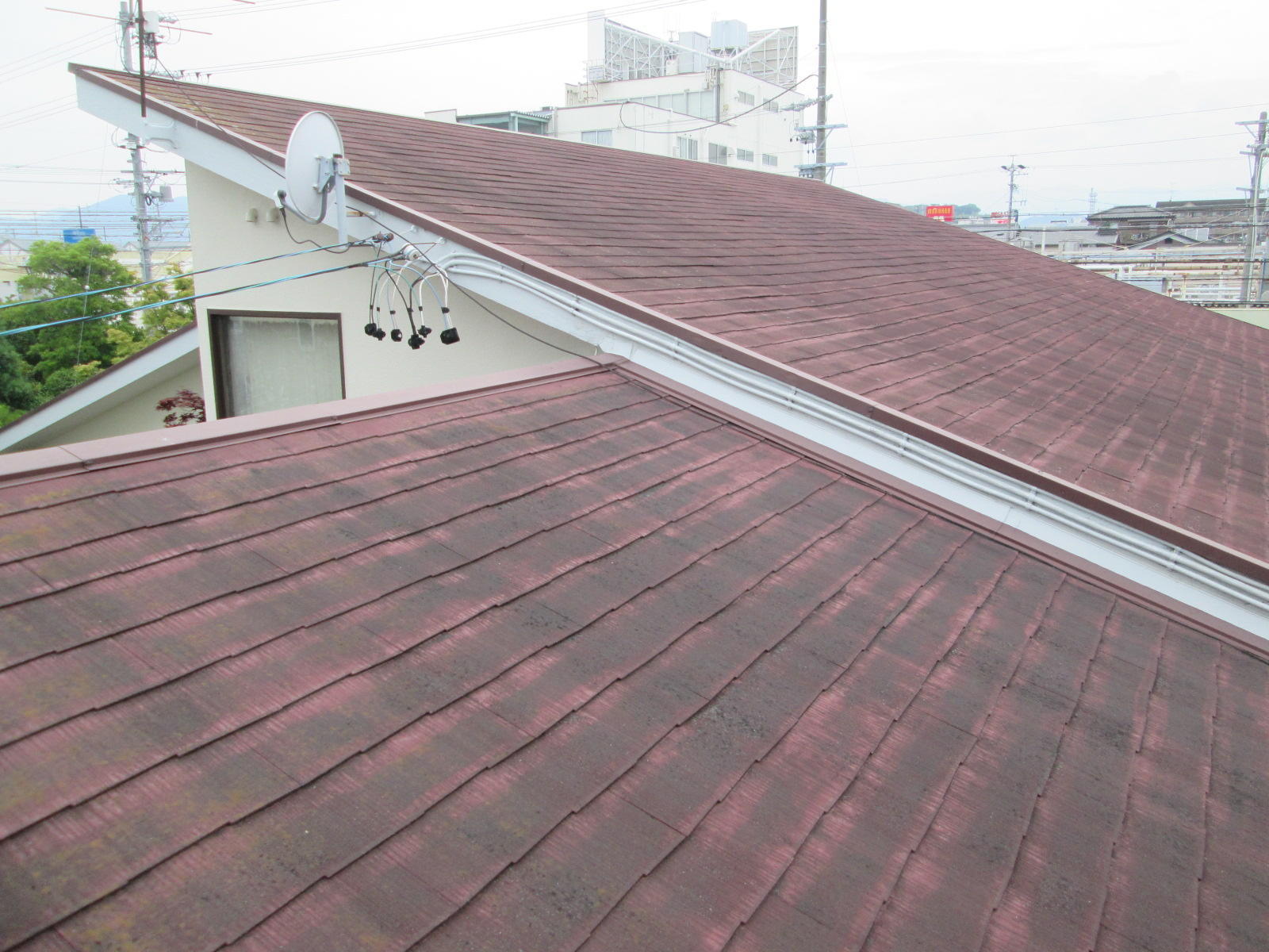 スレート屋根の上から金属製屋根を葺く『カバー工法』で、屋根をリフォーム。雨漏りも改善し、断熱性・防音性もアップしました。