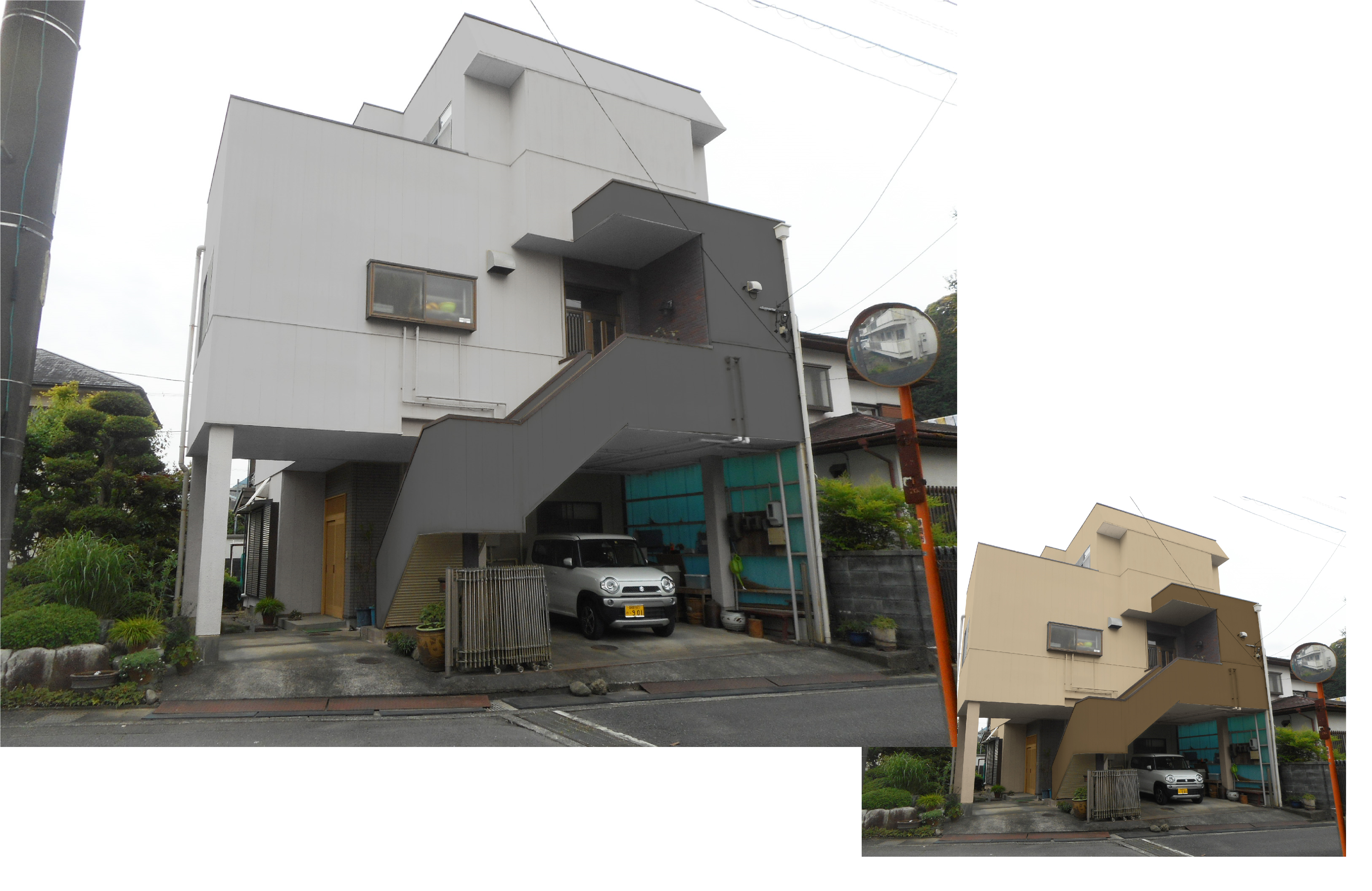 前回の外壁塗装業者の施工が不満だった為『しっかり施工する業者を探していた』というS様。知人にそのことを話したところ、その方が弊社を紹介してくださったとのことでした。色の選定はプレゼン画像を使って実際のイメージを見ていただきました。はじめ不安だったお客様も、お打ち合わせ、施工と進んでいくうちに安心してくださり、最後には施工担当者の対応が良かったとお褒めの言葉を頂き、私達も安心しました。