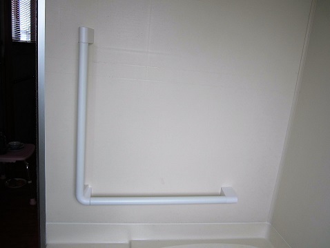 L型の手すりは、浴槽の出入りと立ち座りの時にお使い頂けます。