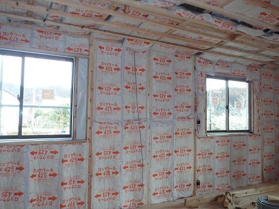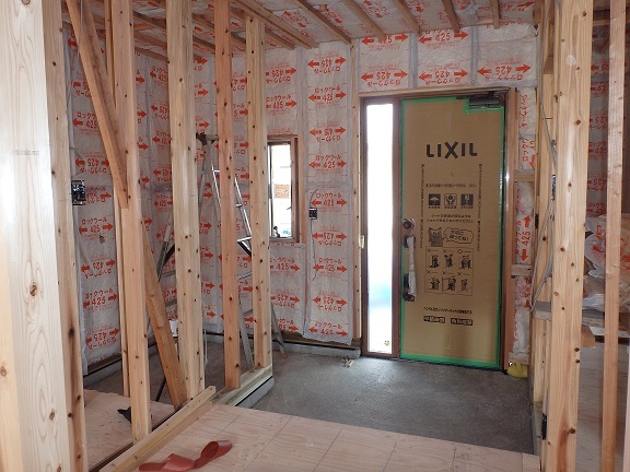 内部工事も着々とすすみ、本日は断熱材の施工が行われておりました(^^♪