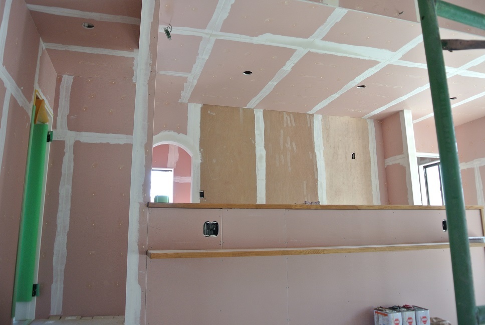 本日はクロス(壁紙)を施工する前の下地処理の作業が行われておりました(*^^*)