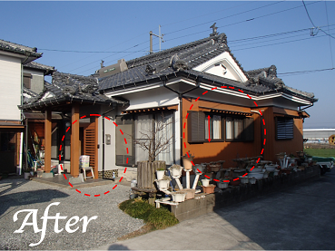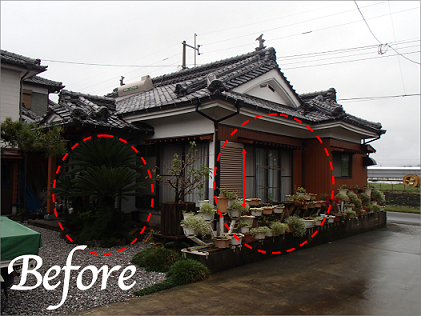玄関脇にあった庭木を移動し、玄関回りを明るく、視線の気になっていた掃き出し窓は視線の気にならない大きさへ変更しました。